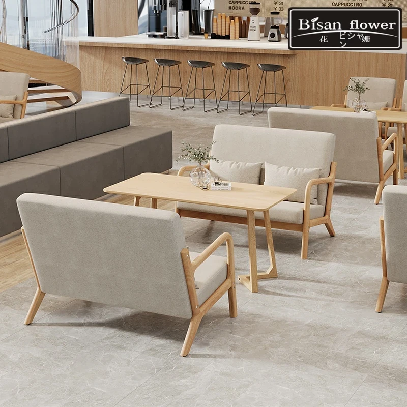 シンプルで現代的なデザインの無垢材ソファ!小さなスペースにもぴったりのダブル3人掛けカウンターソファとテーブル椅子のセット。新しい中式スタイルで、インテリアをおしゃれに演出します。