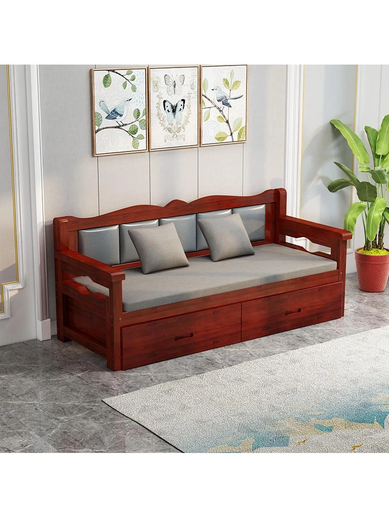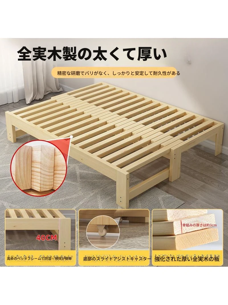 折りたたみソファベッド|全木製の小型ハウス向け伸縮可能なスライドベッド|折りたたみ式の多機能リビング用家具|省スペースでおしゃれなインテリアに最適!