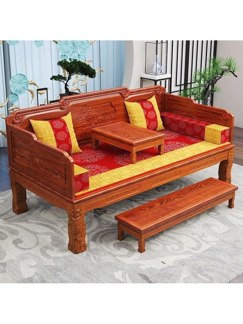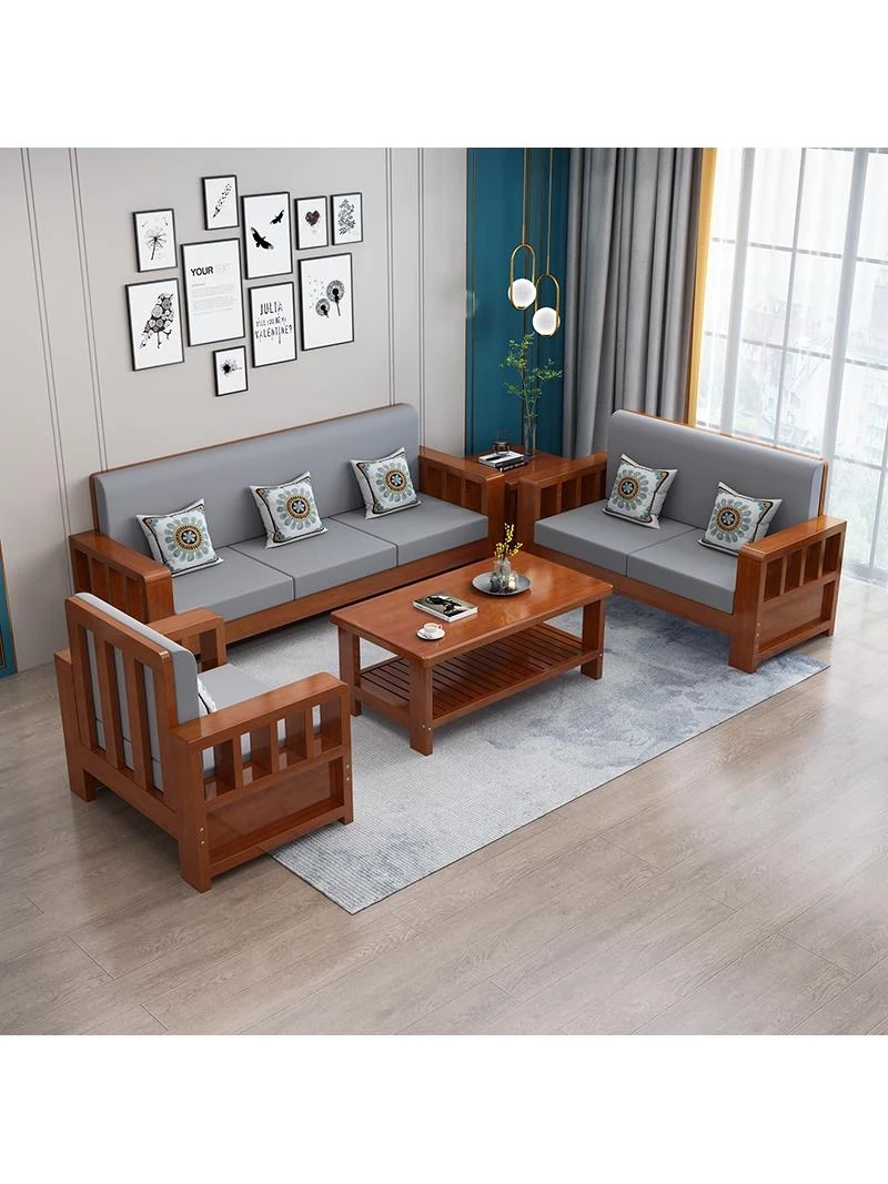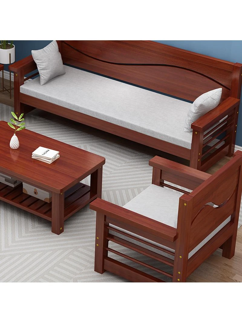 新中式デザインの無垢材ソファ!小型住宅に最適な経済的な全セット、冬夏兼用で快適さ抜群。リビングルームをスタイリッシュに演出する、こだわりの一品です!