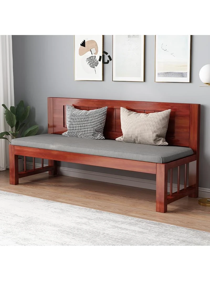 新中式デザインの実木製ソファ - スタイリッシュで収納付きの小型リビング向け、シンプルで現代的なデザイン。ダブルベンチとしても使える、コンパクトな寝室にもぴったり!