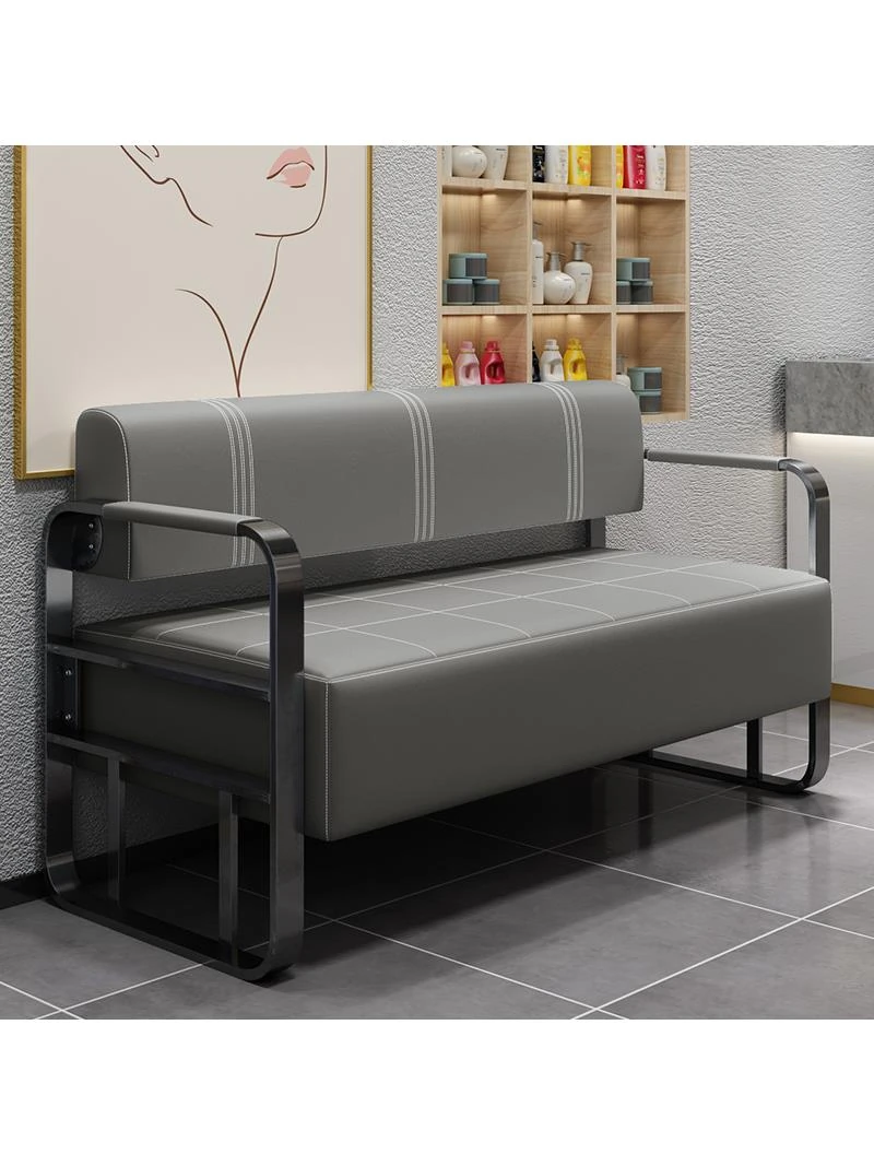 美容院や理髪店に最適!スタイリッシュな不锈鋼製ロングソファ - おしゃれな待合スペースを演出し、快適なひと時を提供!オフィスやアパレル店の接客にもぴったりです。