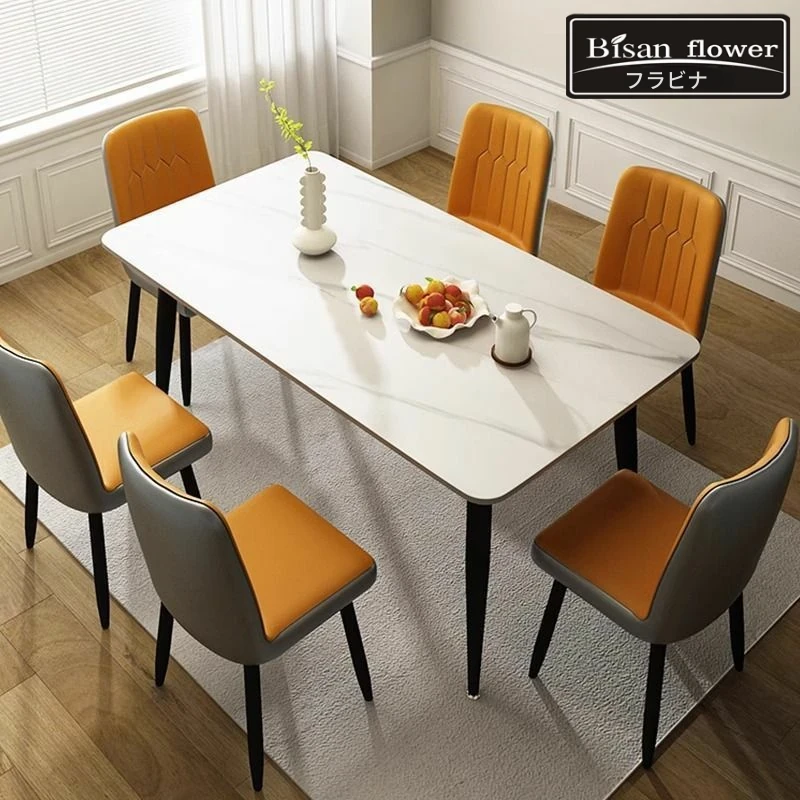 モダンでシンプルな軽奢岩板のダイニングテーブル - 2024年新作、コンパクトな小型住宅向けの長方形テーブルと椅子のセット。おしゃれで機能的、食事の時間を特別に演出します!