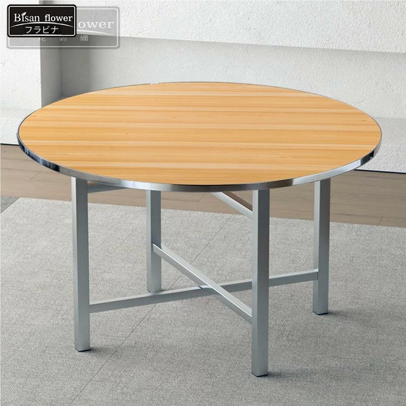 厚手の円形天板の無垢材テーブル!家庭用・折りたたみ式・ホテルや宴会にも最適!美しいデザインで、パーティーやダイニングにぴったり。おしゃれで便利な円卓で、特別なひとときを演出します!