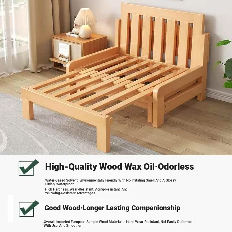 Multi-Functional Solid Wood Folding Sofa Bed - Space-Saving Expandable Pull-Out Bed for Small Apartments, Easy to Use Single Person Bed Frame