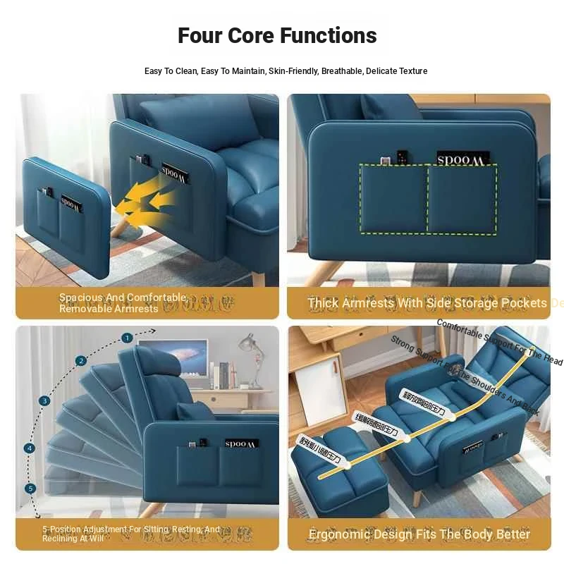 Compact Living Room Sofa for Small Spaces - Comfortable Single Lazy Chair with Foldable Backrest, Ideal for Long Hours of Sitting and Working at Your Computer. Perfect Multi-Functional Recliner for Dorms and Apartments!