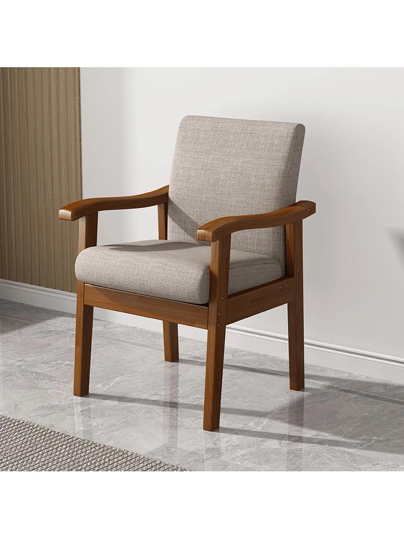 Solid Wood Armchair with Backrest - Comfortable Single Sofa Chair for Home, Ideal for Computer Desks and Long Sitting Sessions, Perfect for Lazy Days and Mahjong Games!