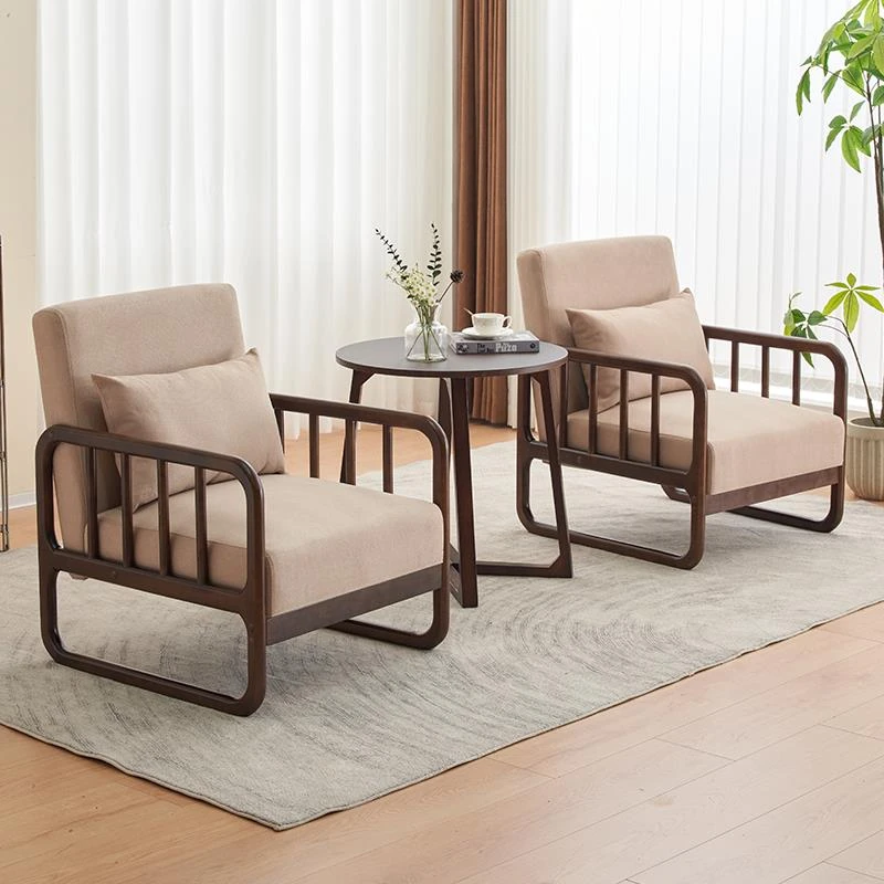 Stylish Wooden Lounge Chair for Hotels - Compact Japanese-Style Single Sofa for Small Spaces, Perfect for Balconies and Living Rooms, Ideal for Relaxation and Comfort