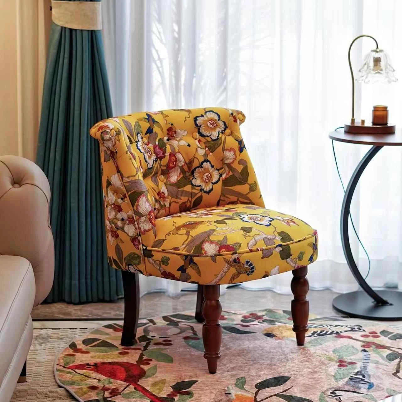 Stylish American Modern Fabric Lounge Chair - Perfect for Bedroom & Balcony, Cozy Shoe Changing Seat, Trendy Single Sofa for Relaxation, Ideal for Guesthouses and Homes