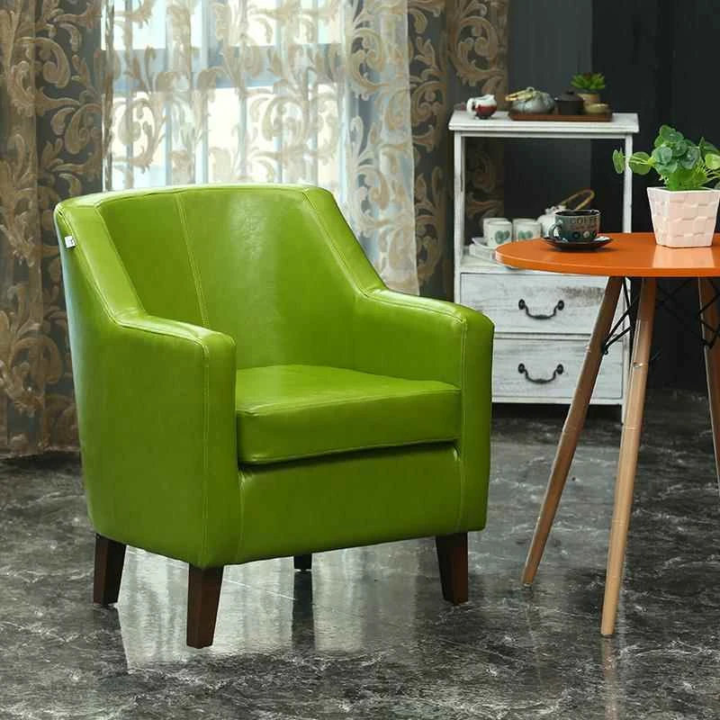 Stylish Single Sofa Chair Set for Balcony - Leather Upholstery, Perfect for Small Spaces, Ideal for Hotels, Bedrooms, Cafés, and Apartments - Sturdy Solid Wood Design