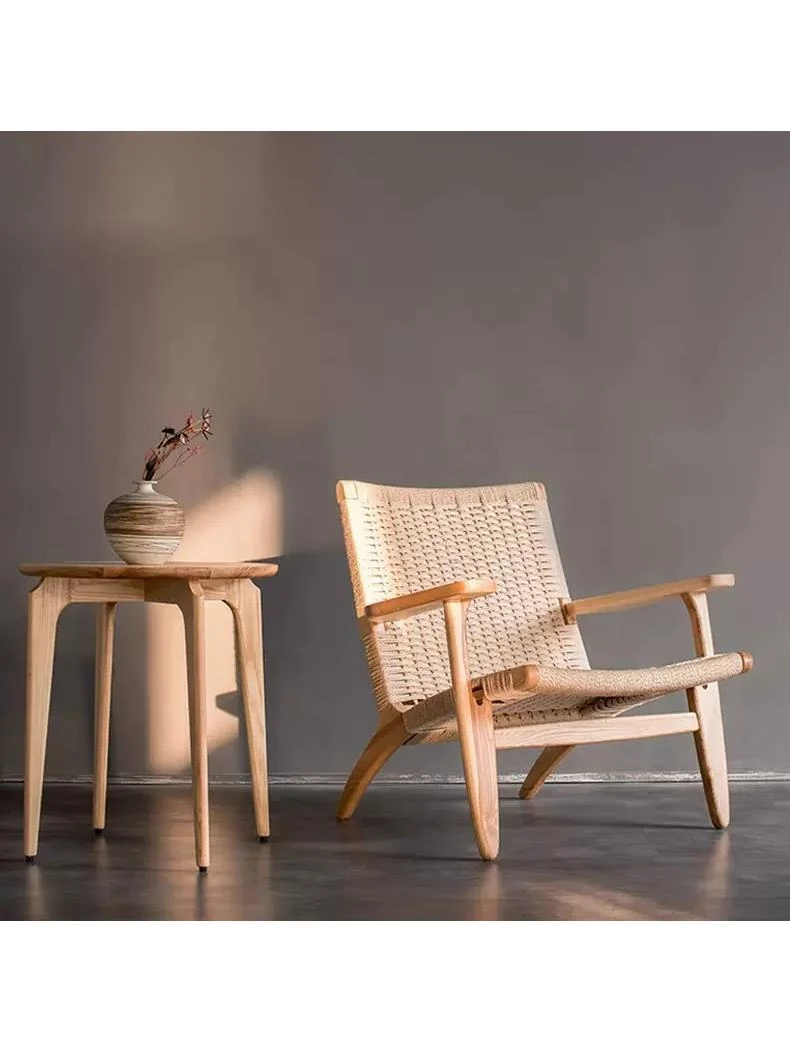 Ins Style Solid Wood Rattan Armchair - Minimalist Single Sofa for Living Room and Balcony, Perfect for Relaxation and Designed for Comfort