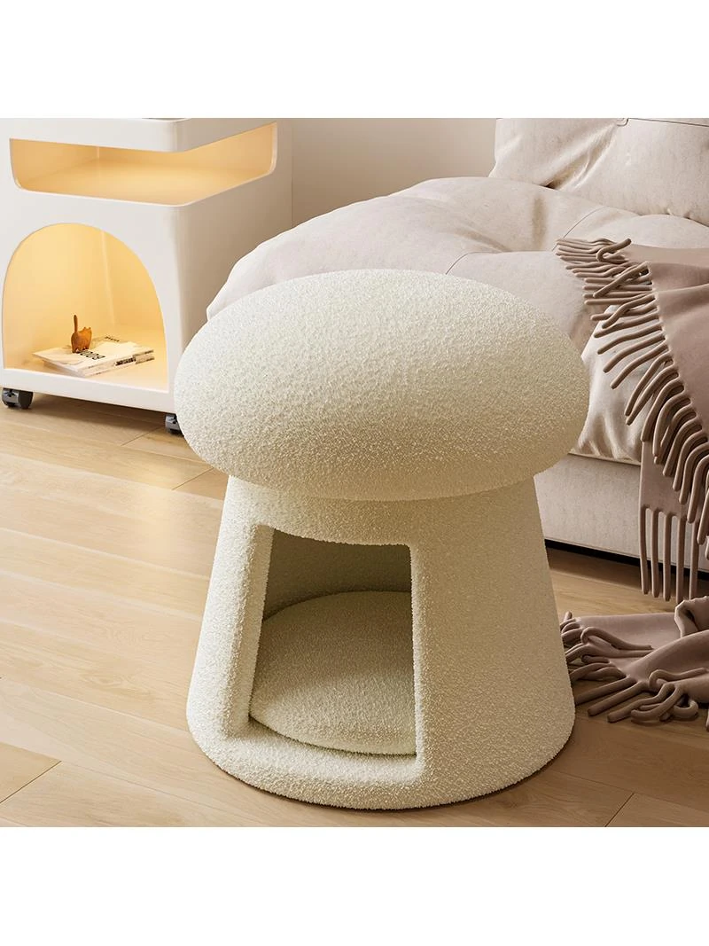 Creamy Luxury Makeup Chair - Elegant Dressing Table Stool for Master Bedroom Walk-in Closet, Stylish Mushroom Round Stool for Girls' Bedrooms, Perfect for Influencers
