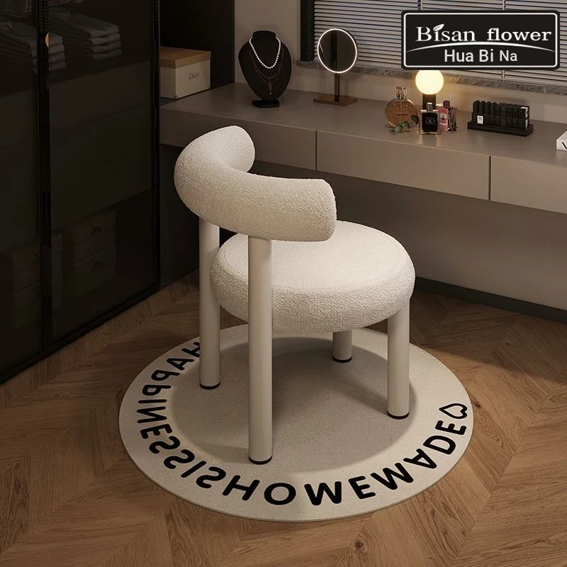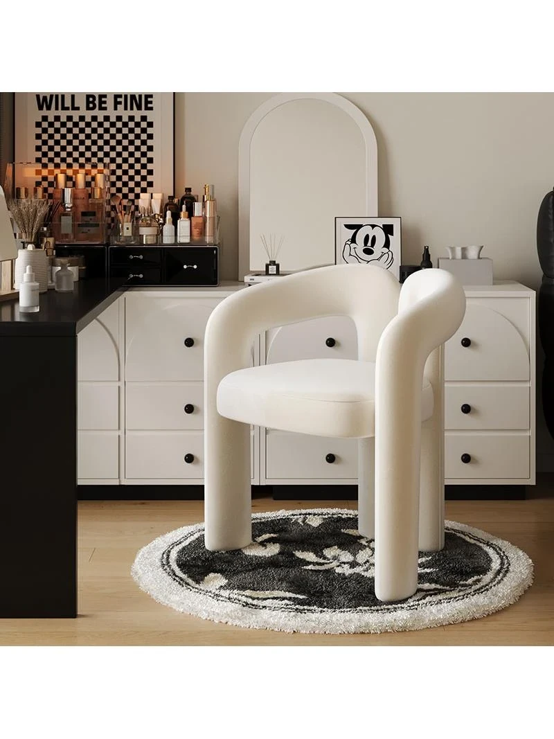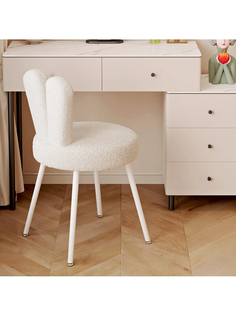 Nordic Style Cream Vanity Stool - Modern Minimalist White Makeup Chair for Bedroom Luxury and Elegance