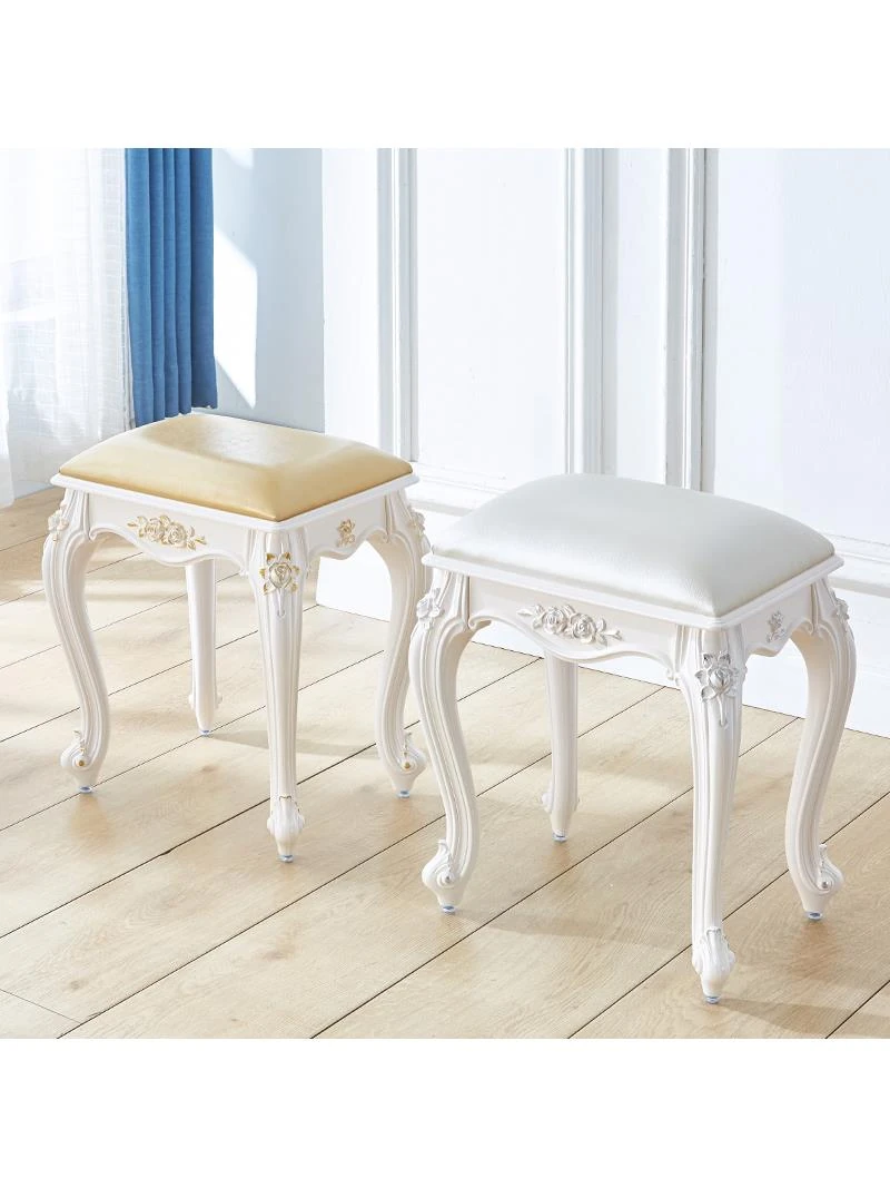 Elegant Solid Wood Makeup Stool - Round European Style Vanity Chair for Bedroom, American Design, Soft Cushion for Ultimate Comfort, Perfect for Princess Vanity Tables.