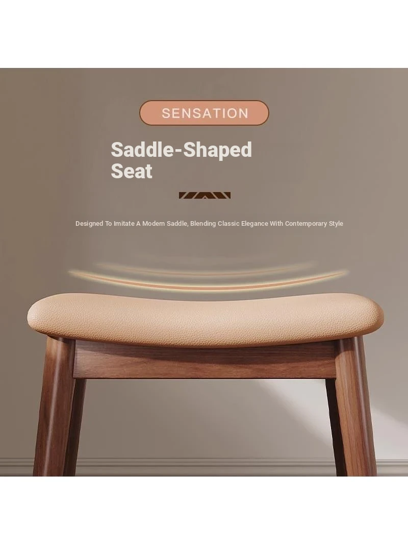 Stylish Solid Wood Vanity Stool for Home - Elegant Makeup Chair for Girls' Bedrooms, Chic Saddle Bench with Square Seat, Perfect for Dressing Tables and Influencer Aesthetics.