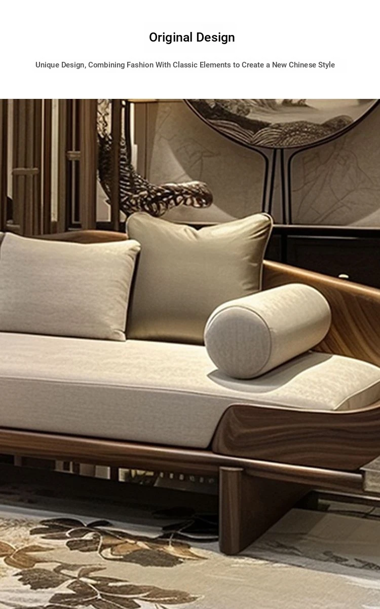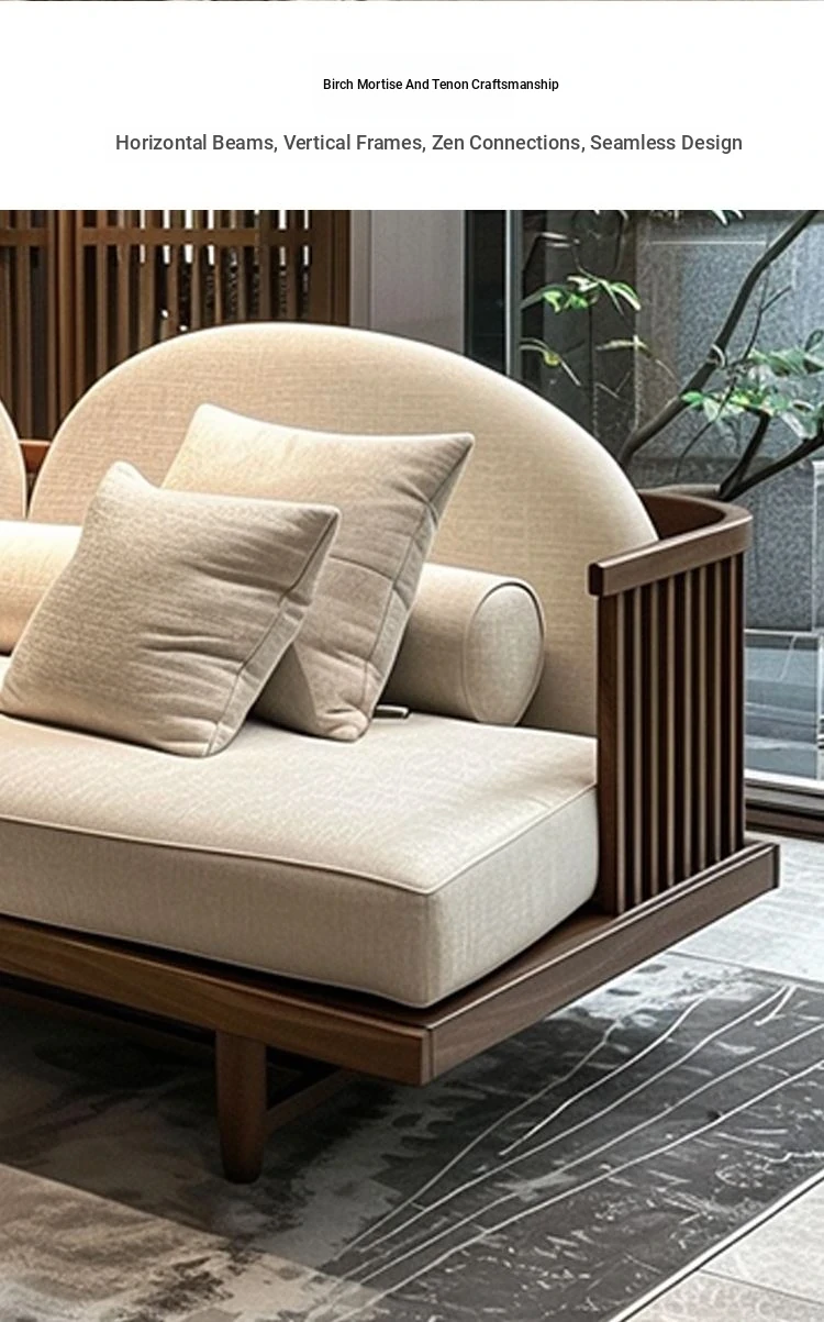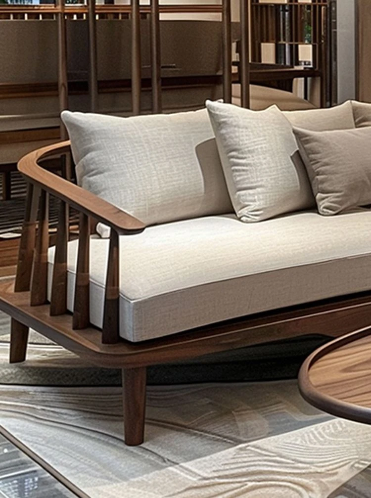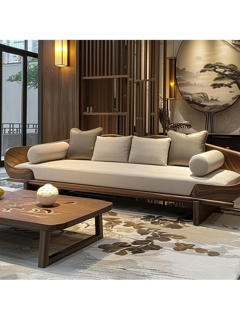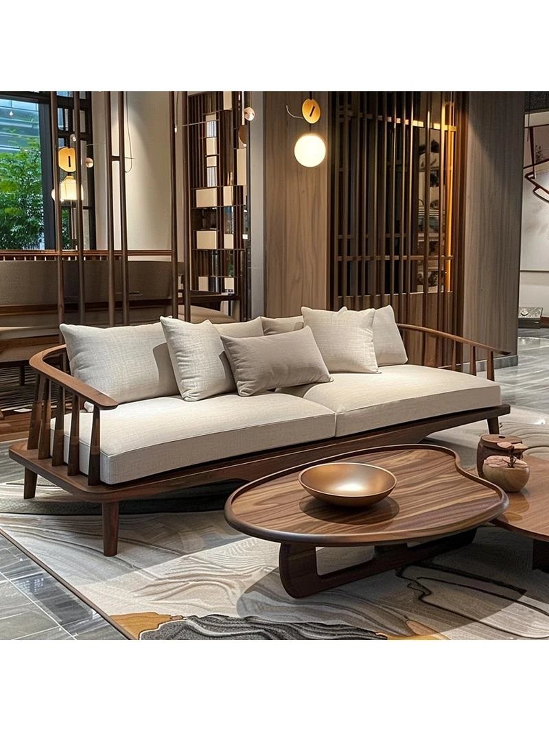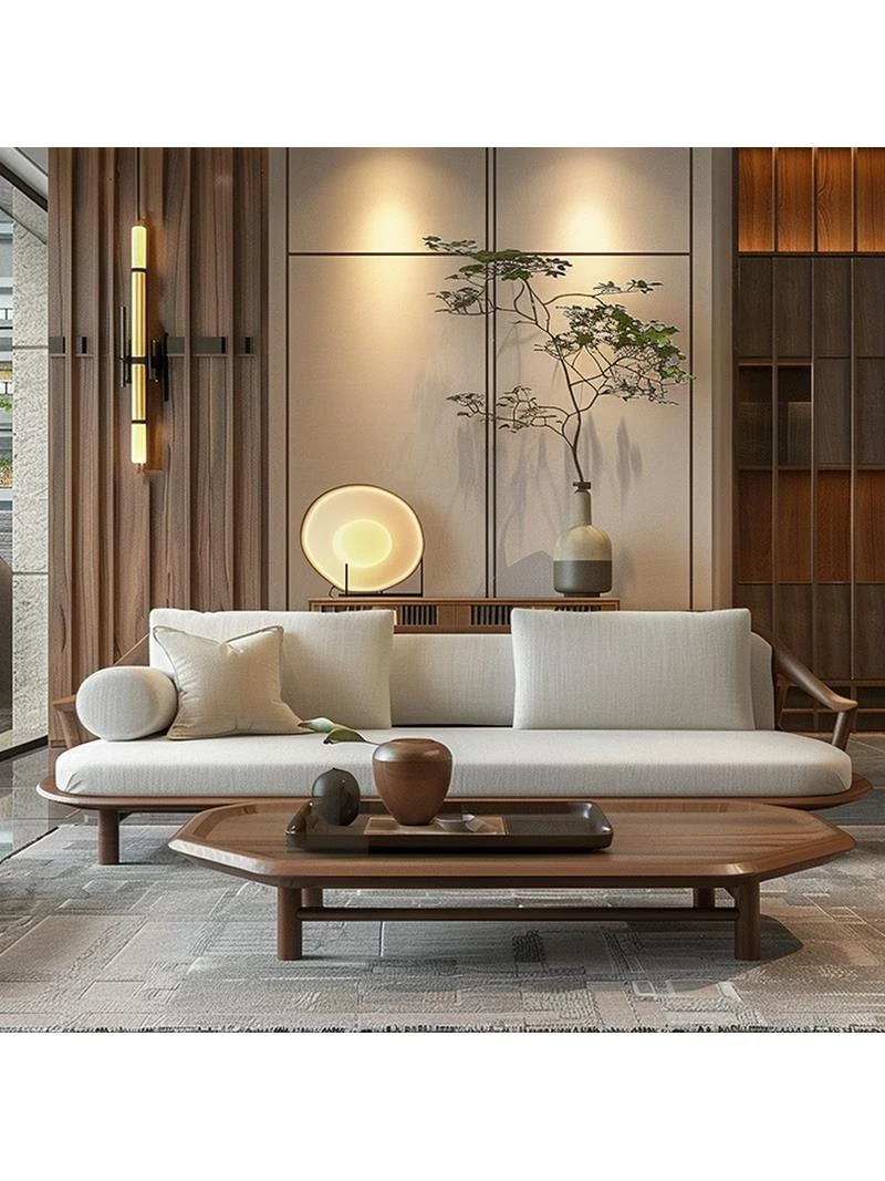 2024 New Chinese Style Zen-Inspired Light Luxury Solid Wood Sofa for Living Room - Elegant Reception and Meeting Furniture for Villas and Homes