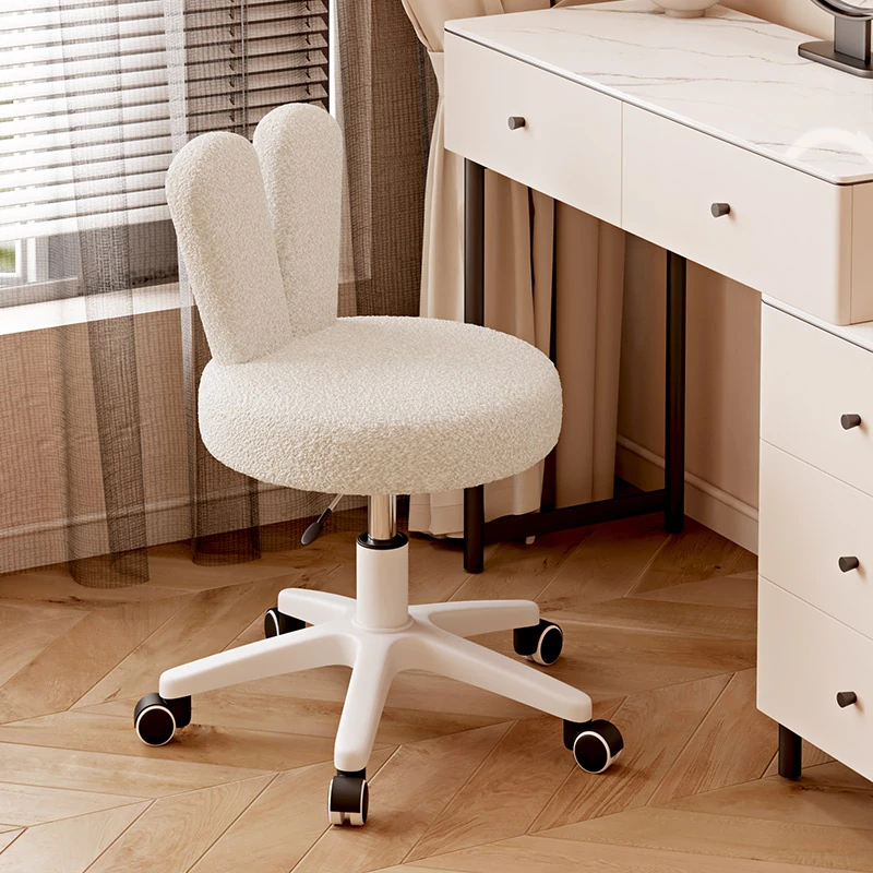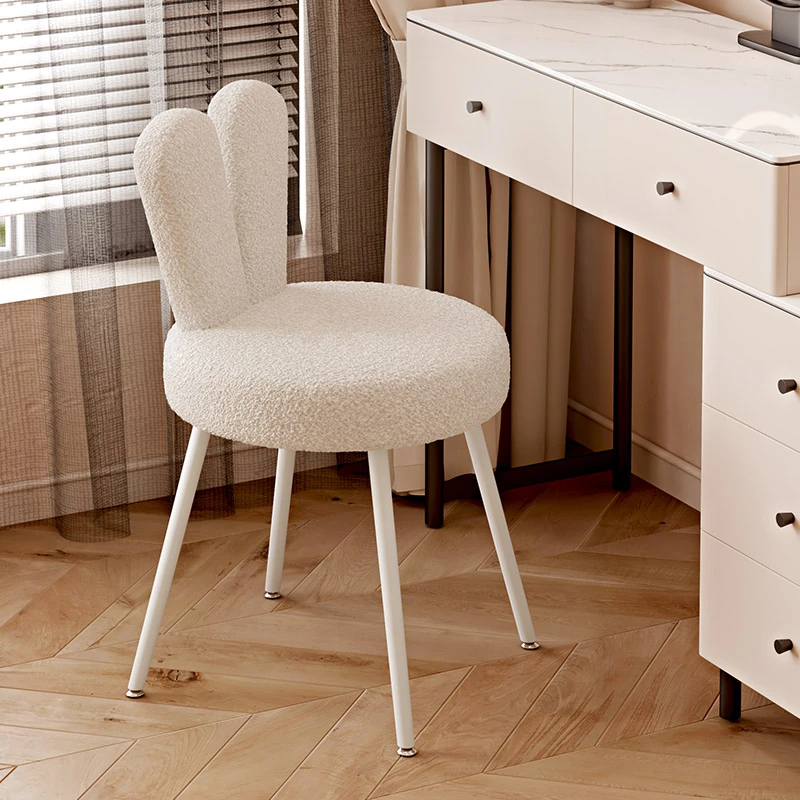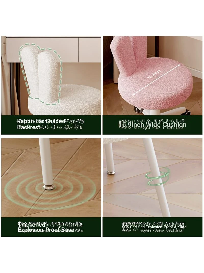 Creamy Makeup Vanity Stool for Girls - Elegant Dressing Table Chair for Small Spaces, Perfect for Home Use and Nail Art. Stylish and Chic Design for Your Bedroom!