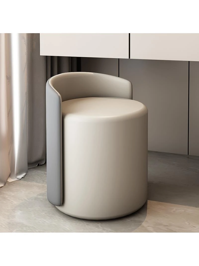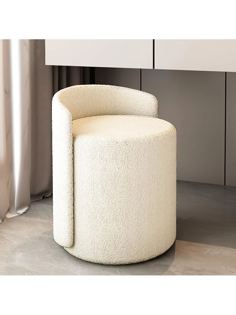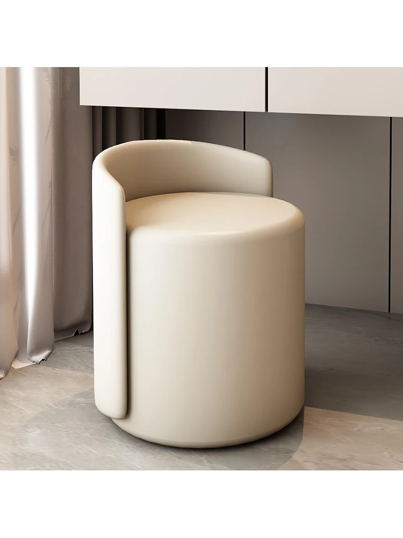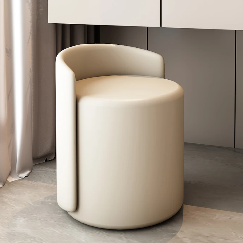 Luxurious Cream Upholstered Vanity Chair with Backrest - Elegant and Minimalist Stool for Bedroom, Perfect for Women in Master Suites