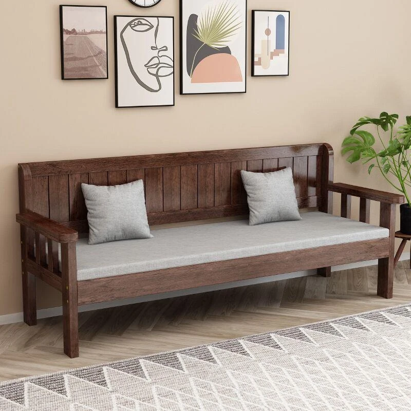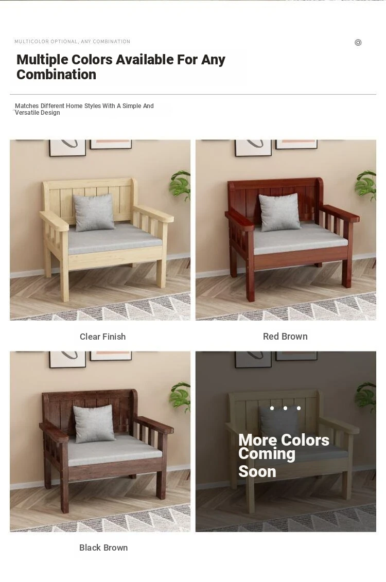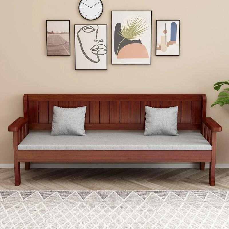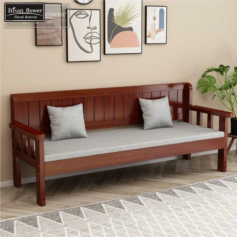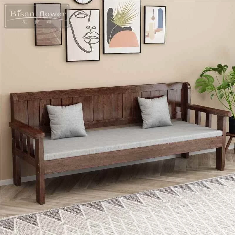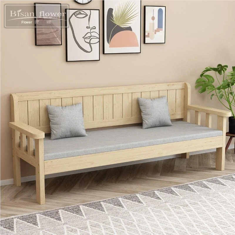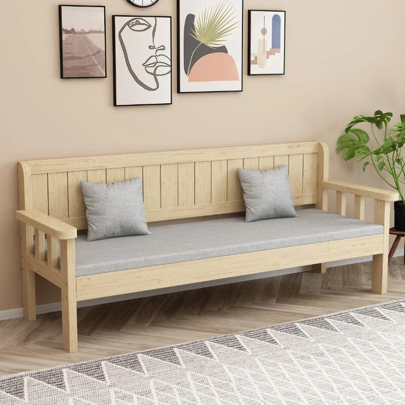 Modern Minimalist Solid Wood Sofa for Small Spaces - European Style 3-Seat/4-Seat Backrest Bench for Balcony, Bedroom, and Living Room