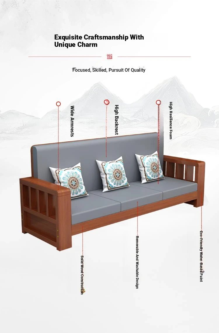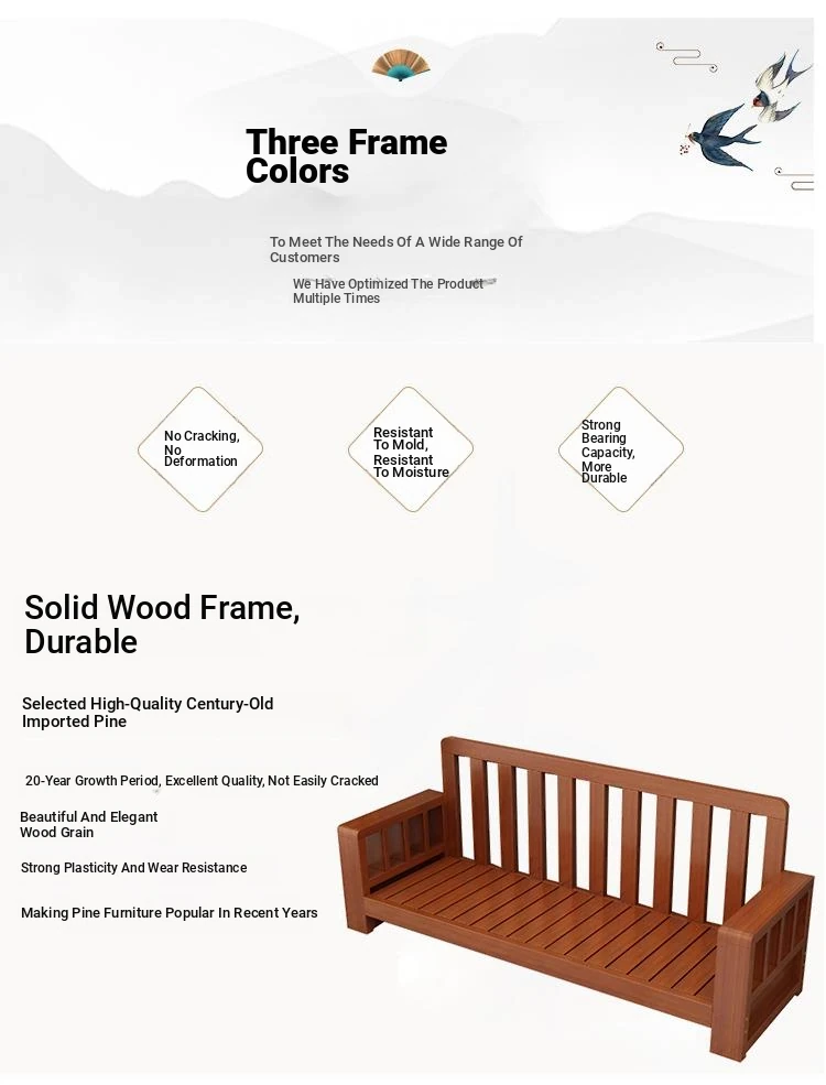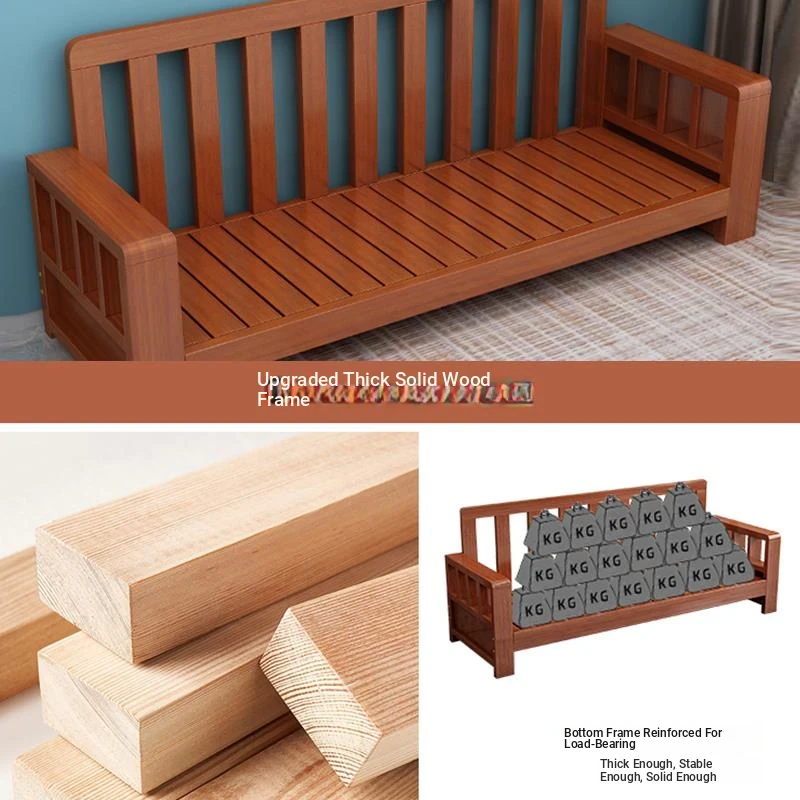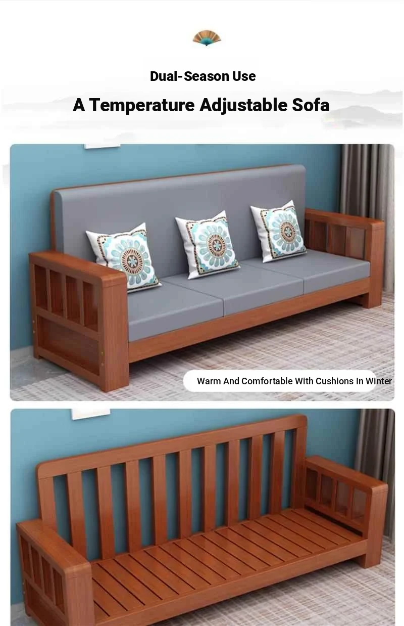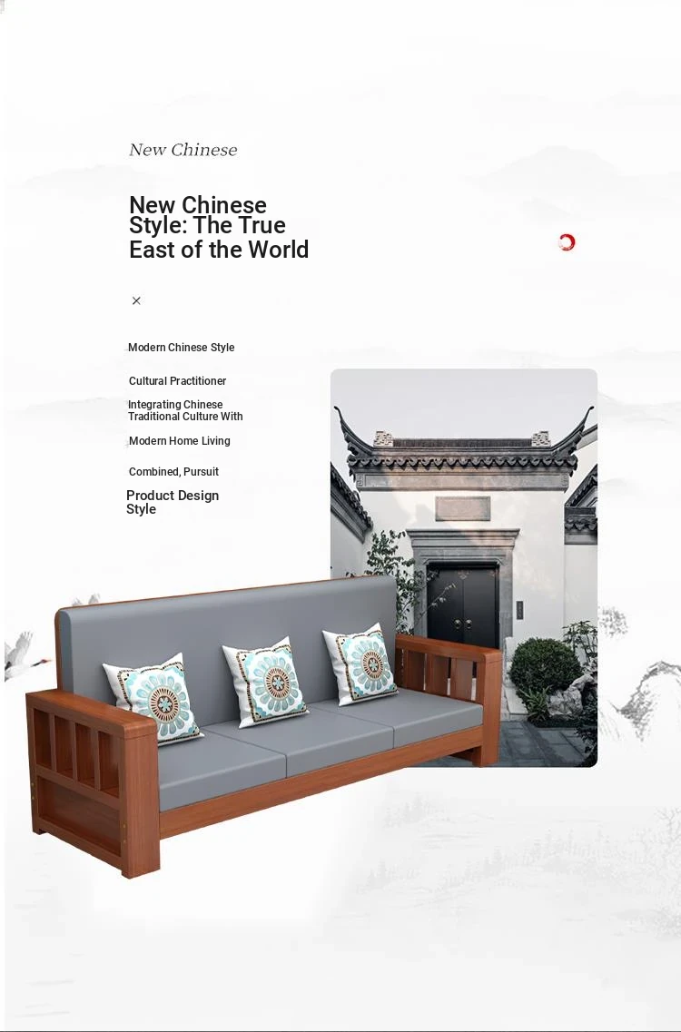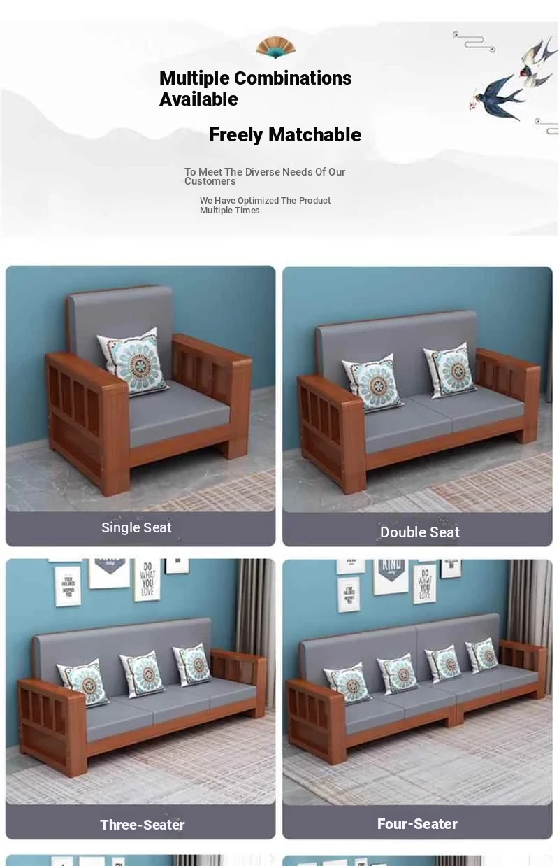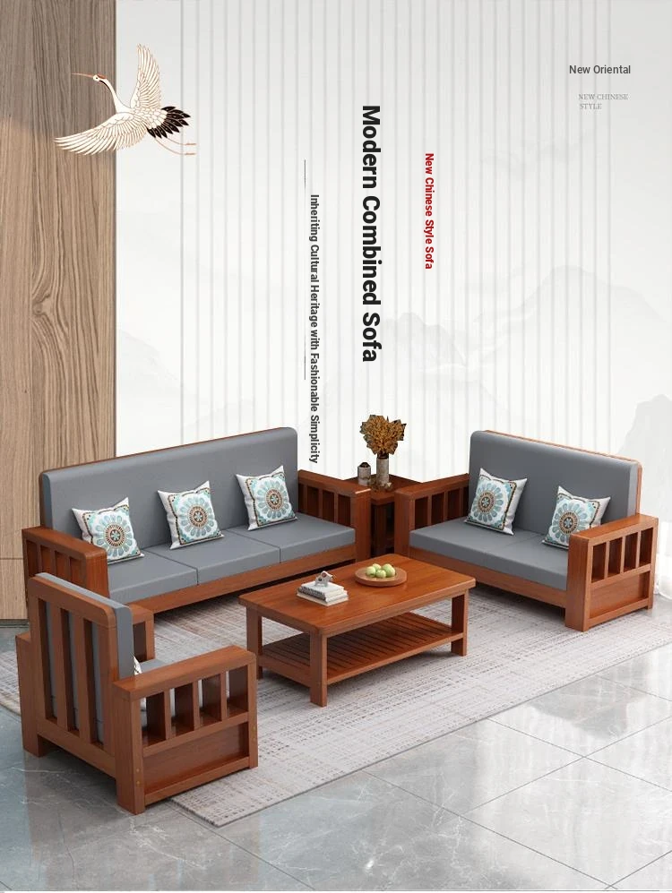 New Chinese Style Solid Wood Sofa Set for Small Apartments - Economical, All-Season Use, Complete Living Room Furniture, Made from 100% Solid Wood. Perfect for Cozy Spaces!