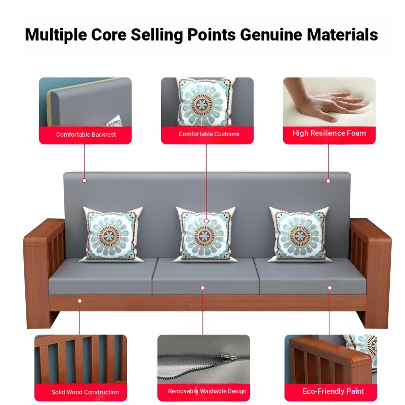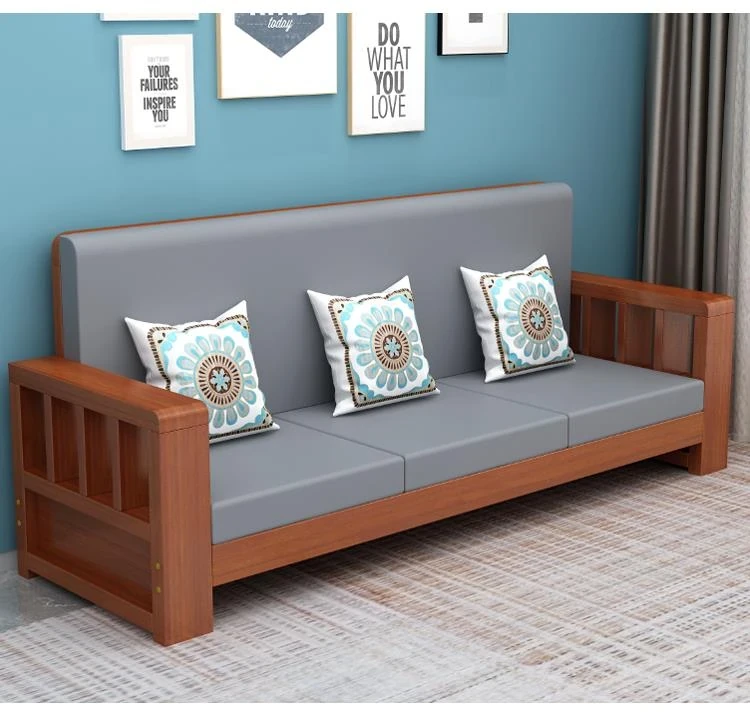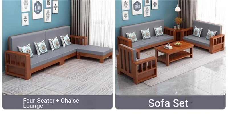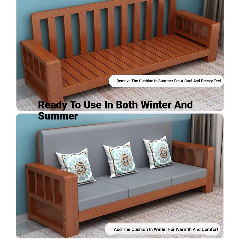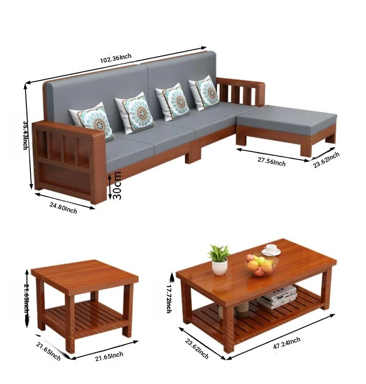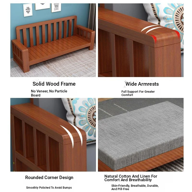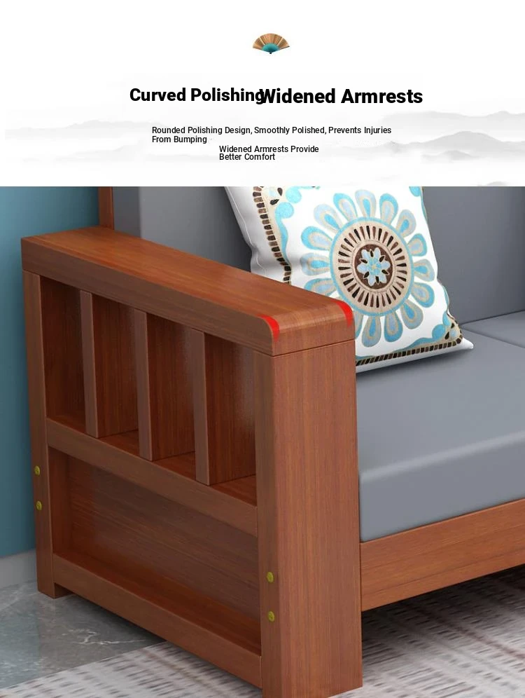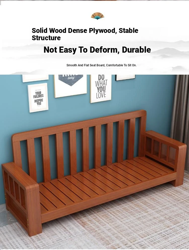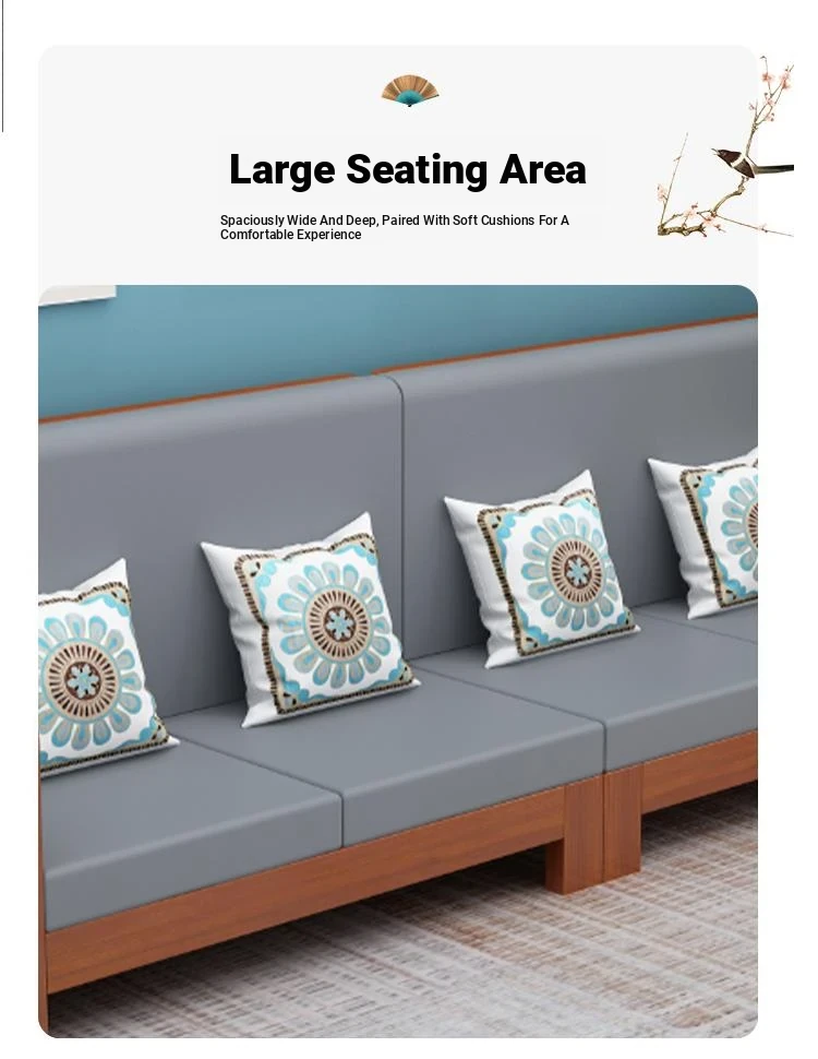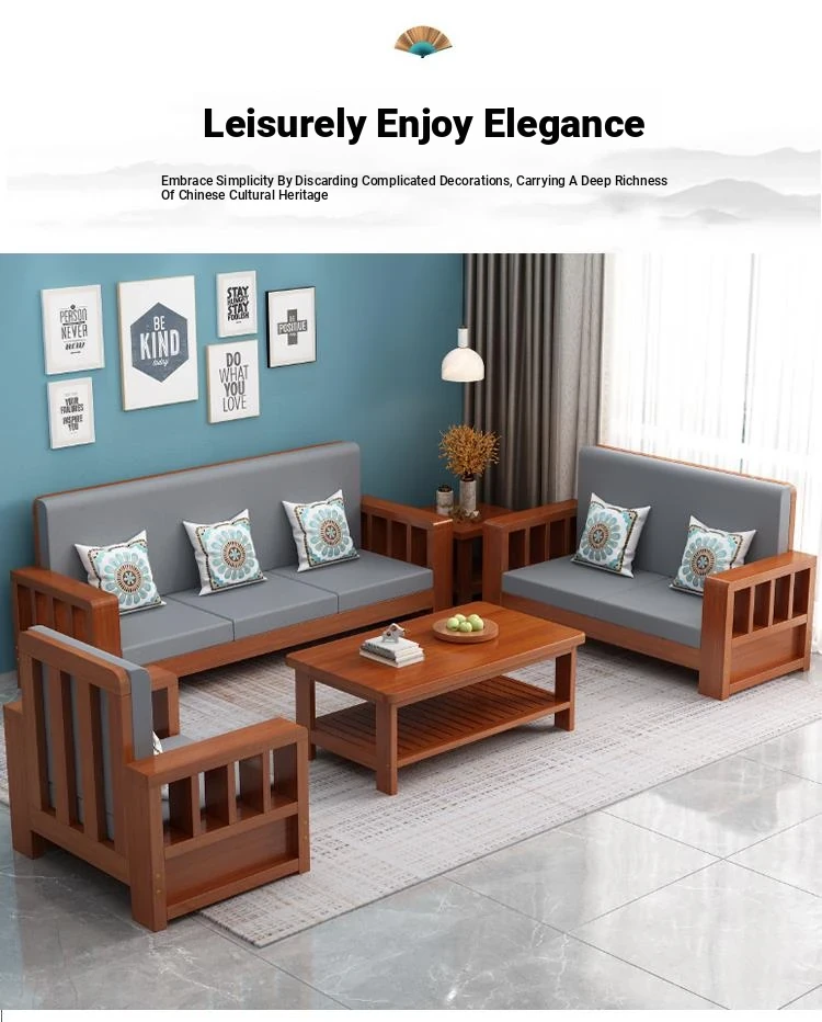 New Chinese Style Solid Wood Sofa Set for Small Apartments - Economical, All-Season Use, Complete Living Room Furniture, Made from 100% Solid Wood. Perfect for Cozy Spaces!
