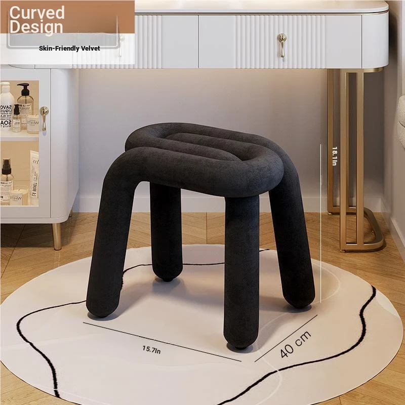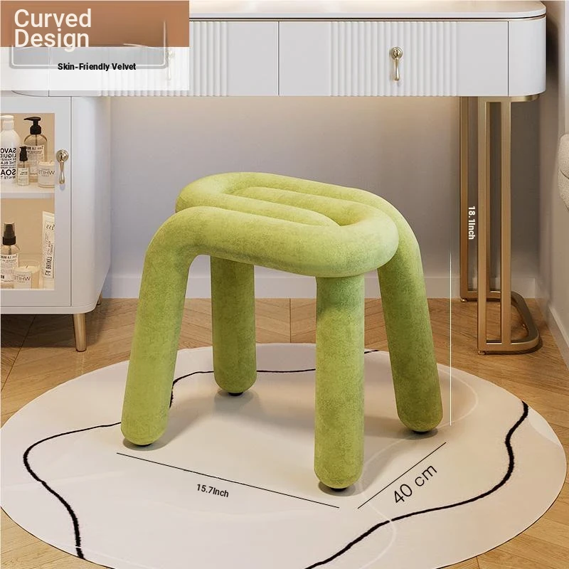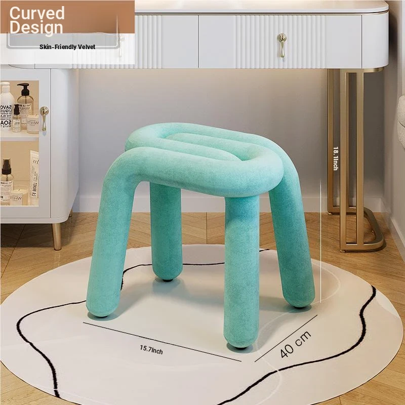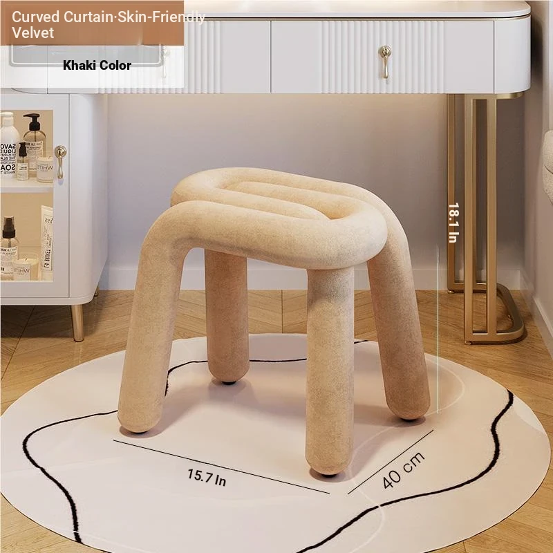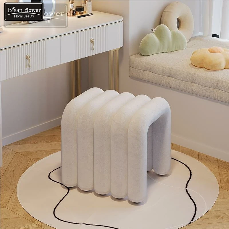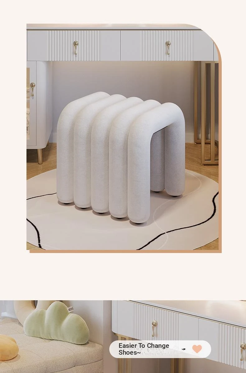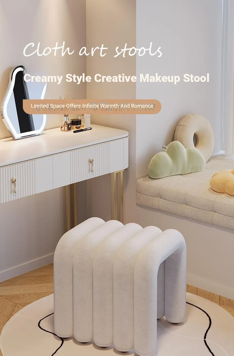 Stylish Makeup Vanity Stool for Home - Chic Creamy Square Stool for Girls' Bedrooms, Perfect as a Dressing Chair or Creative Shoe Bench, Trendy and Minimalist Design