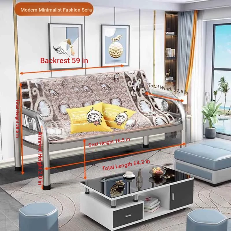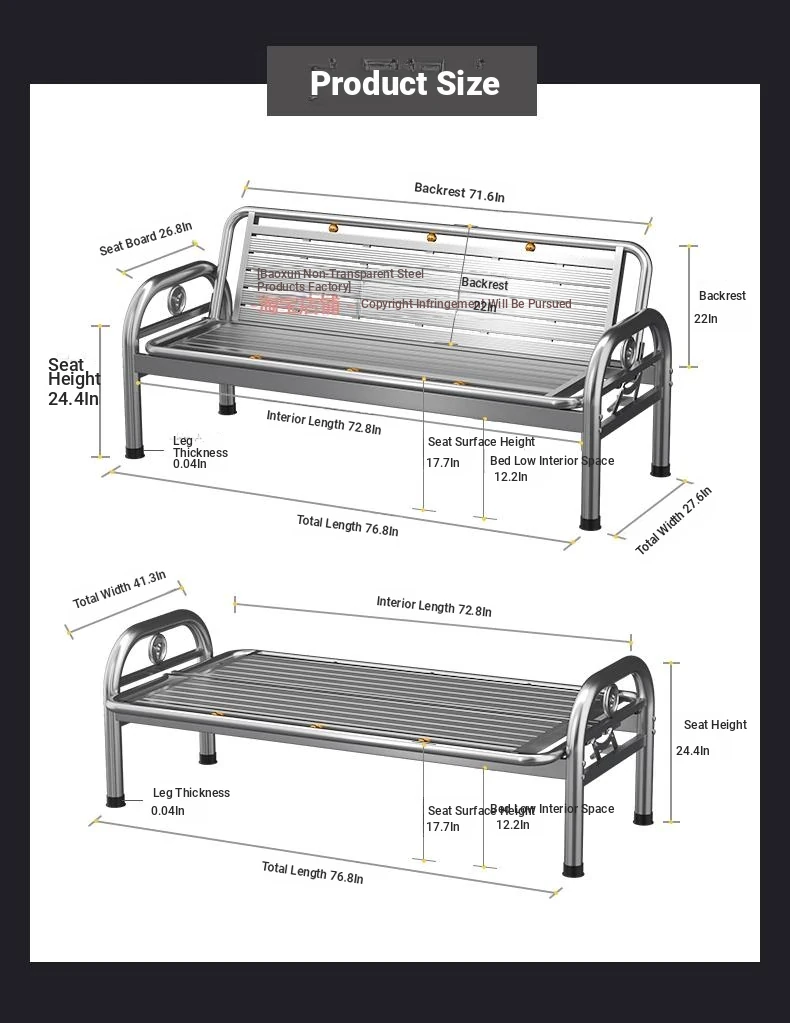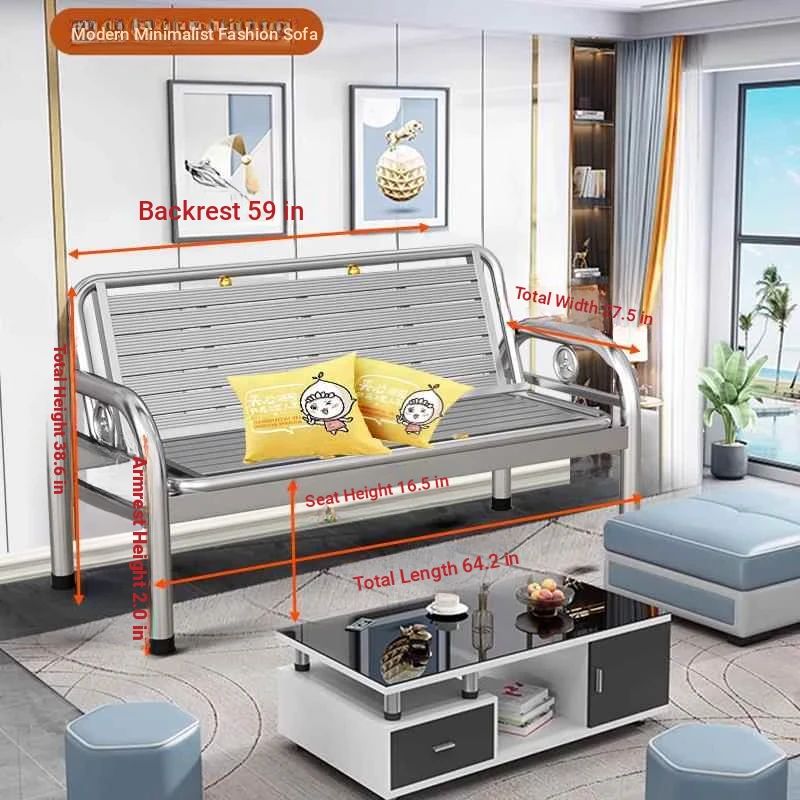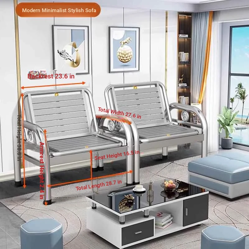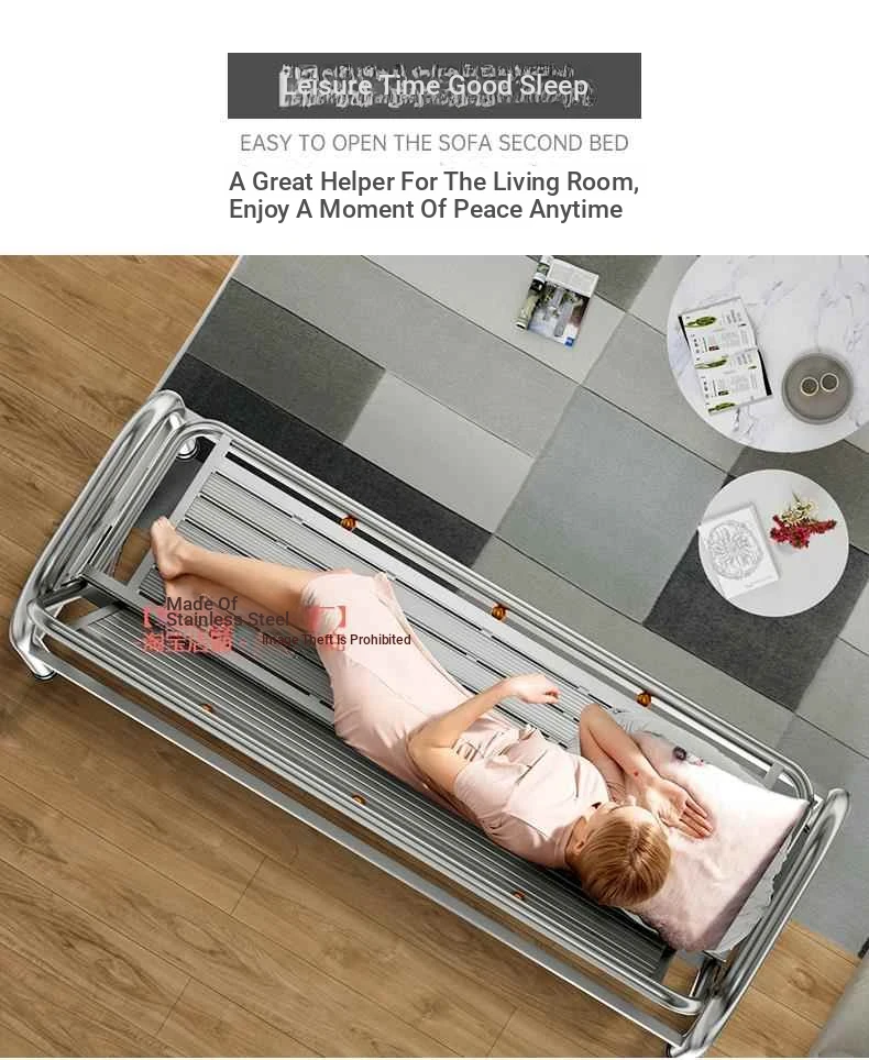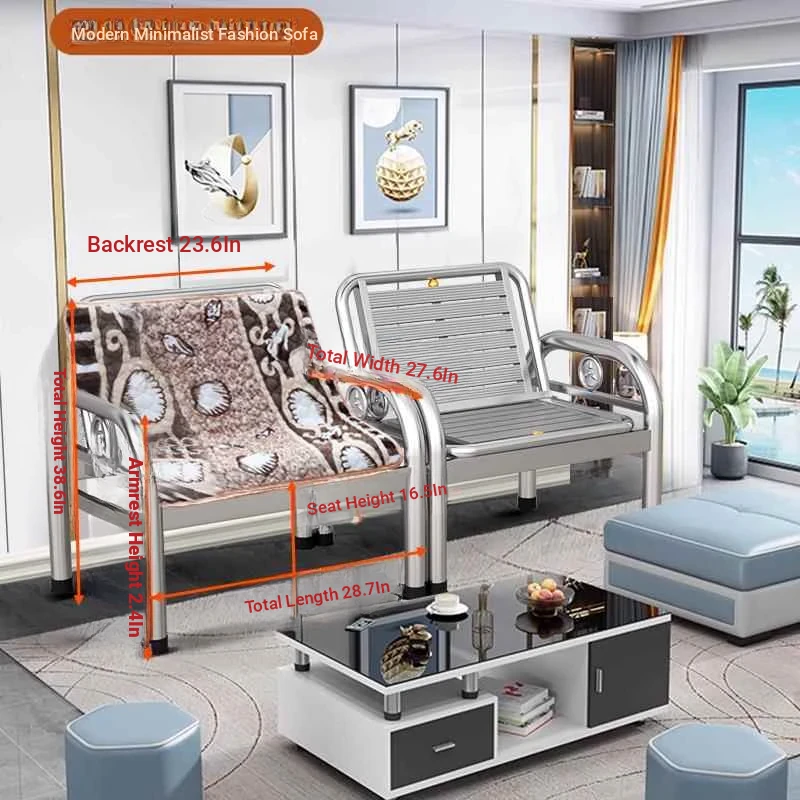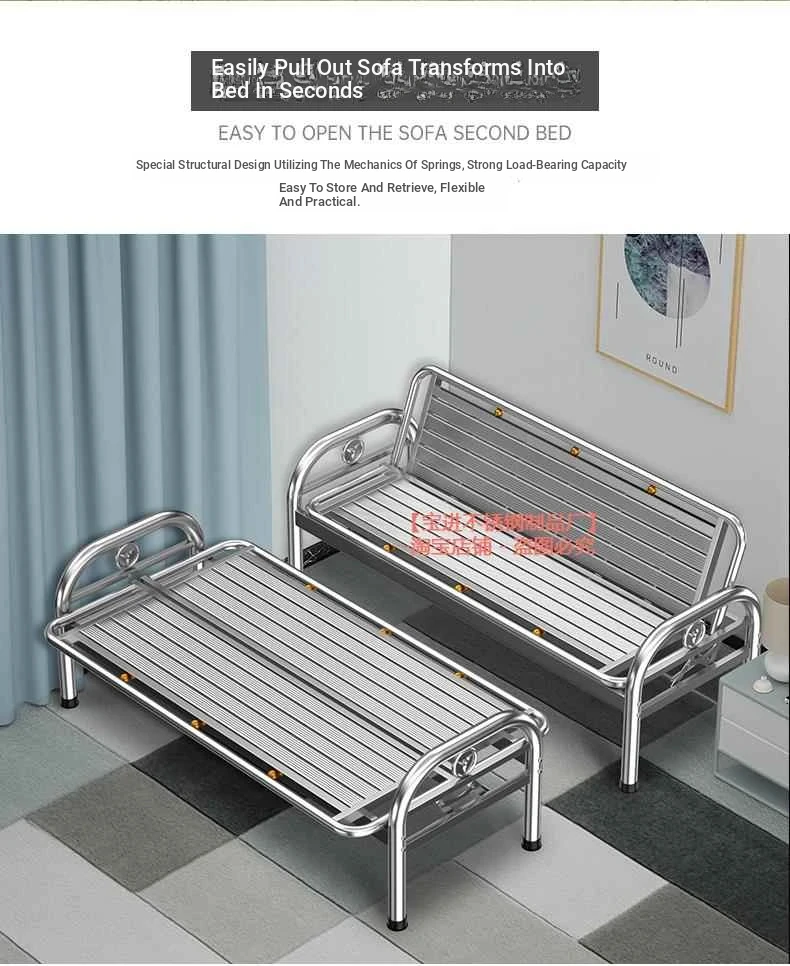Thickened Stainless Steel Sofa Bed - Dual-purpose Foldable Couch for Home, Office & Outdoor Use - Stylish Iron Bench for Living Room and Beyond