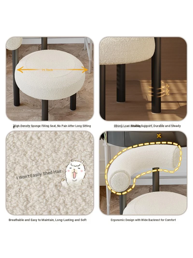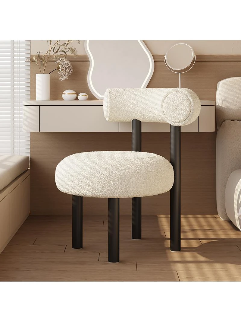 Trendy Makeup Vanity Chair for Girls - Modern Minimalist Compact Stool in Creamy Aesthetic - Perfect for Bedroom or Study Room, Stylish and Comfortable!