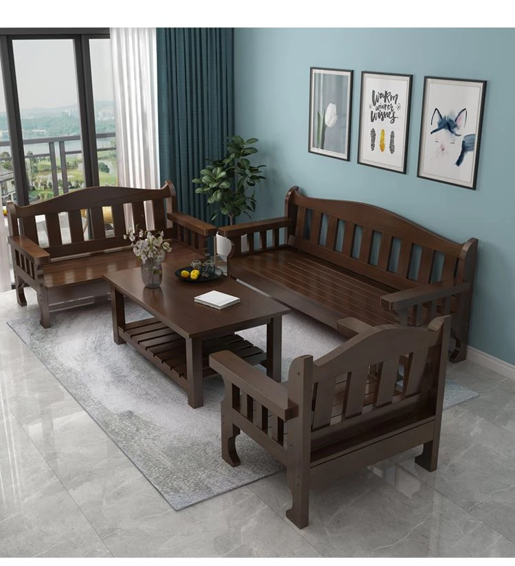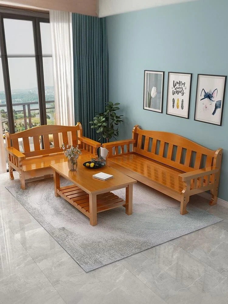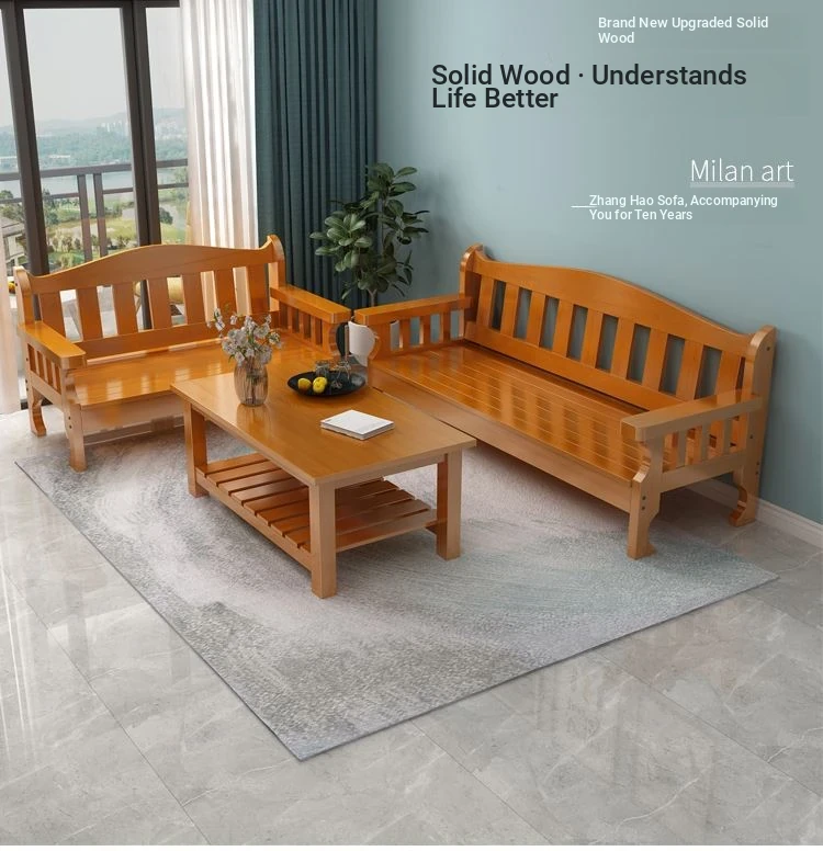 Versatile Solid Wood Sofa Set for Small Spaces - New Chinese Style, High-Back Design, Perfect for Winter and Summer Use, Ideal for Cozy Living Rooms