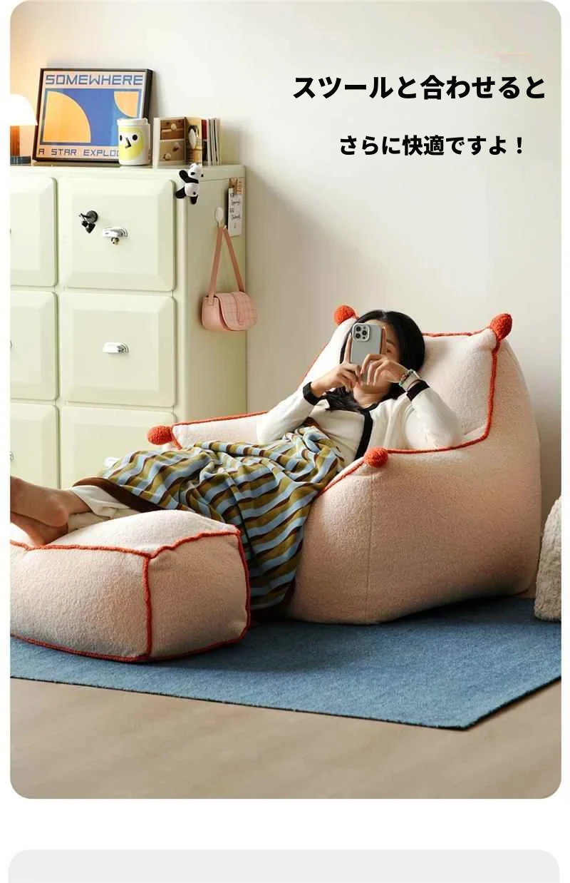 リラックスソファ 一人用 寝転びもできる豆袋チェア 自宅用・狭いスペースにも最適!寮や和室にもぴったりの快適なリクライニングチェア!