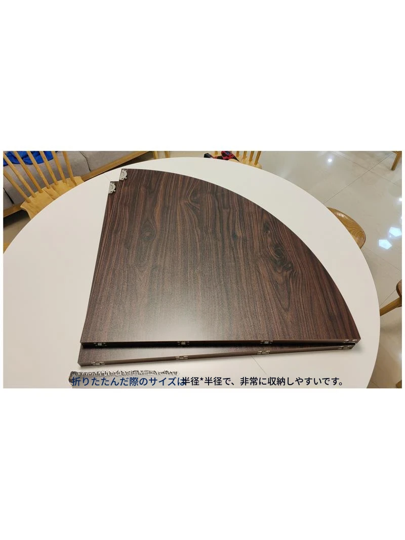 省スペース!折りたたみ式の円形テーブル台面 - 小型住宅に最適な4人用ダイニングテーブル。収納可能な大きな円卓で、使わない時はスッキリ片付けられます。