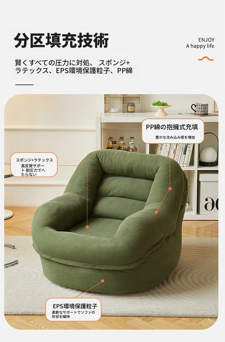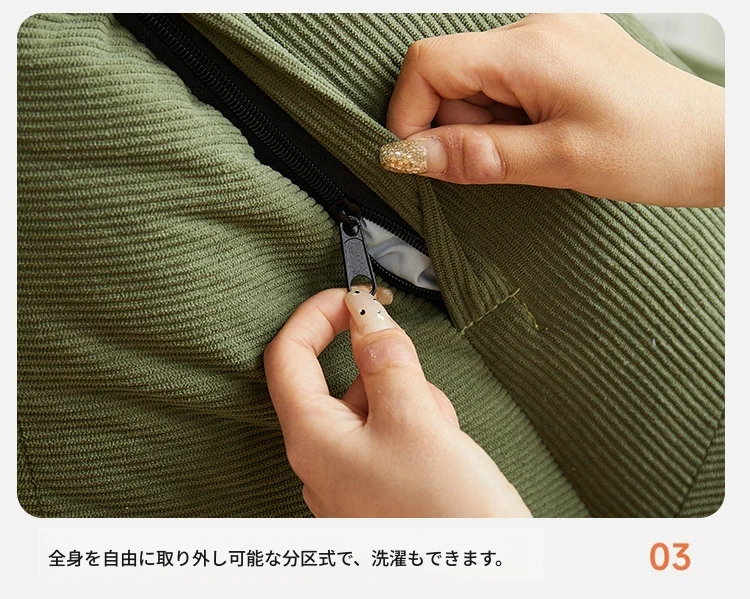 【オリーブグリーン】ラテックスタイプ-肌触り柔らかいコーデュロイ-洗濯可能-シングルサイズ