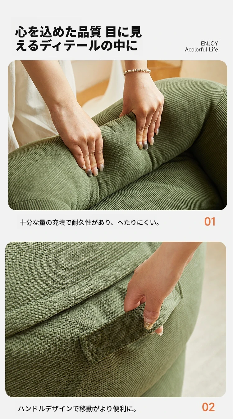 【オリーブグリーン】粒タイプ-肌触り柔らかいコーデュロイ-洗濯可能-シングルサイズ