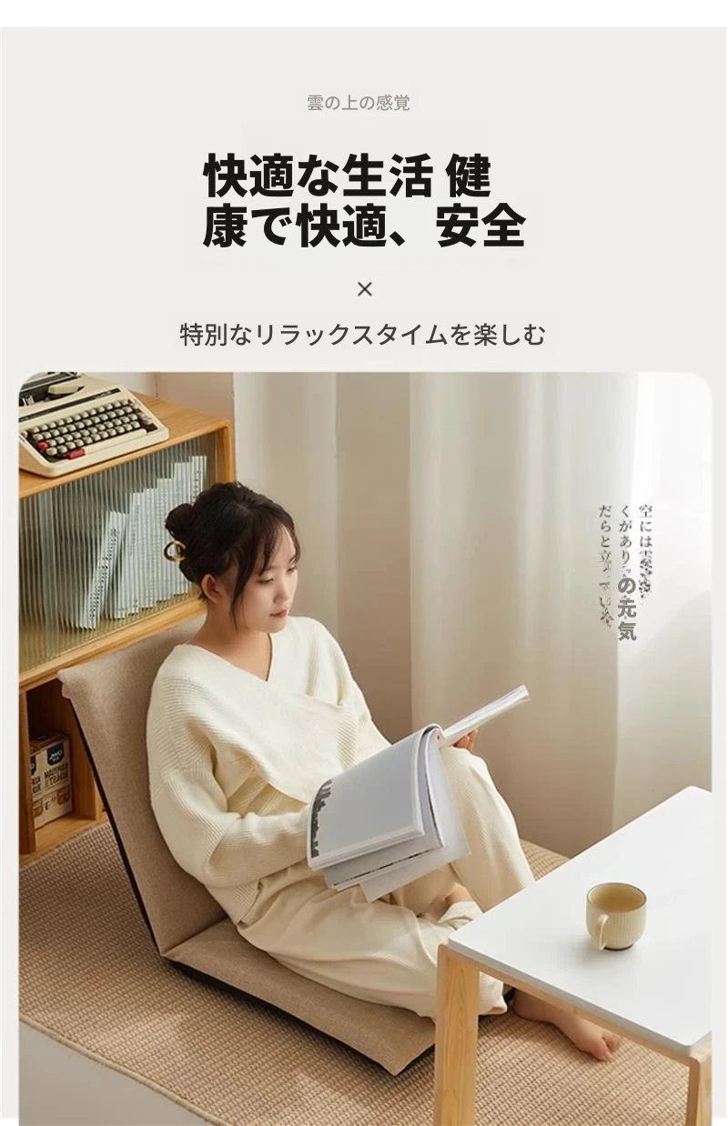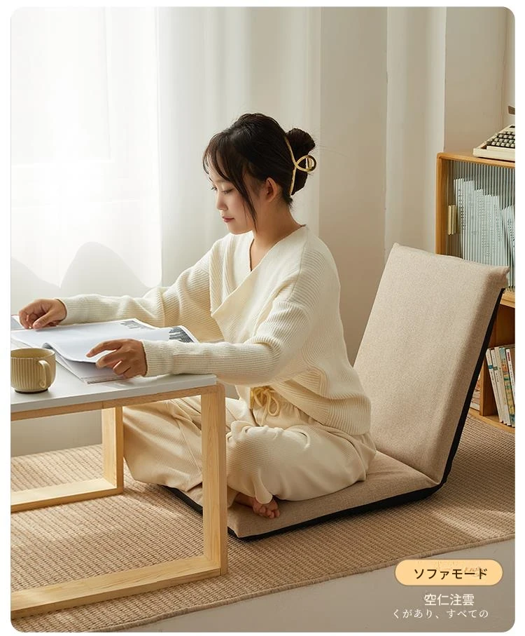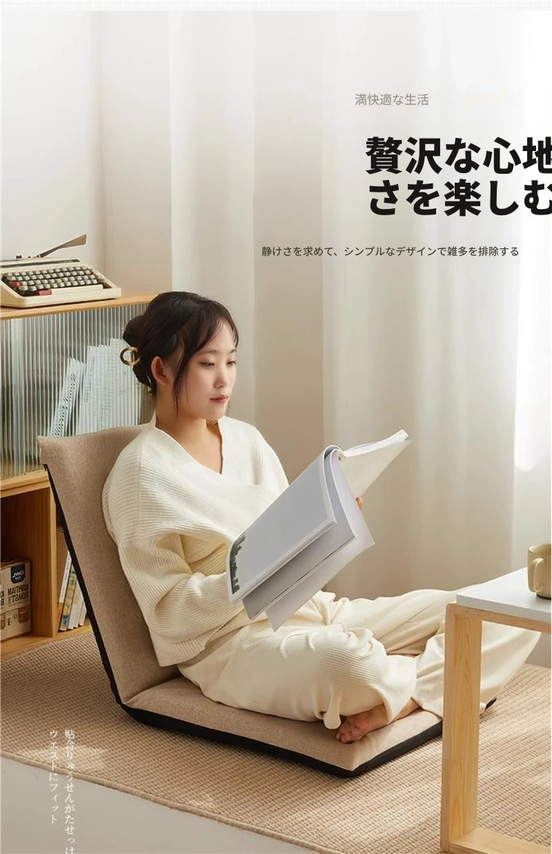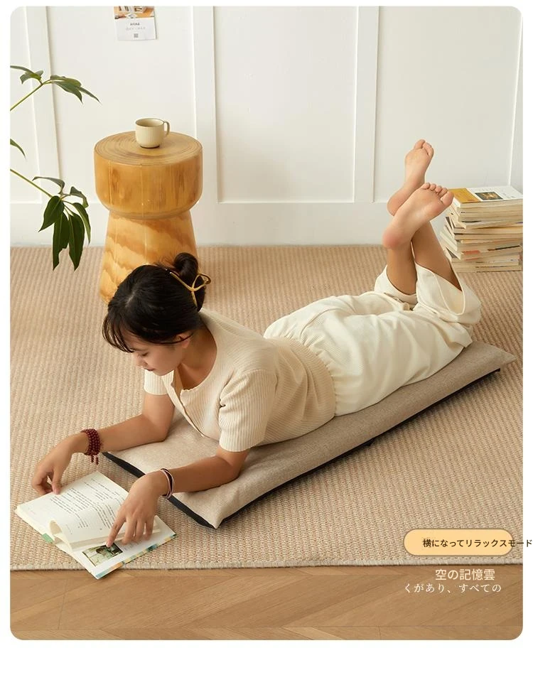 窓辺でリラックス!本を読むための快適クッション。バルコニーやリビングにぴったりのソファ、畳用の一体型座布団。あなたのくつろぎ空間を彩るアイテムです!