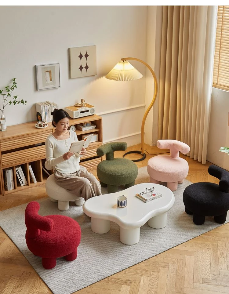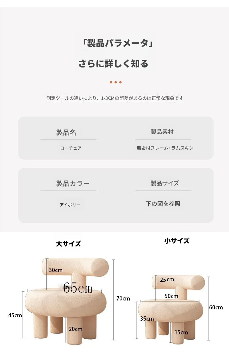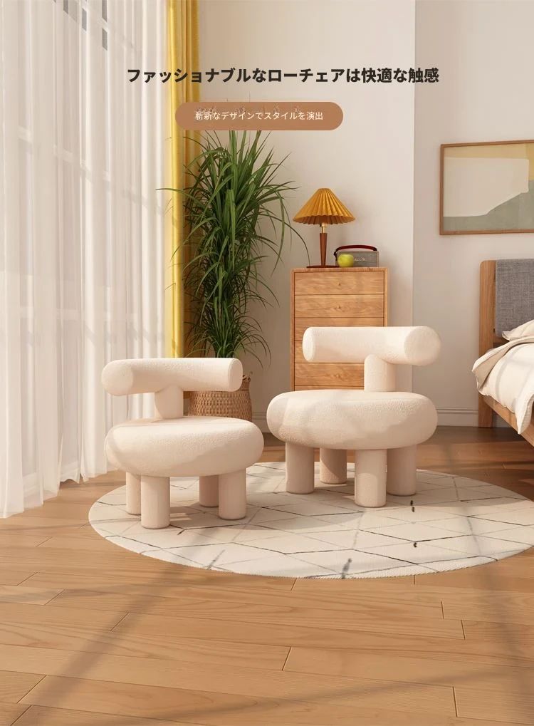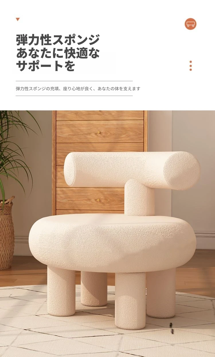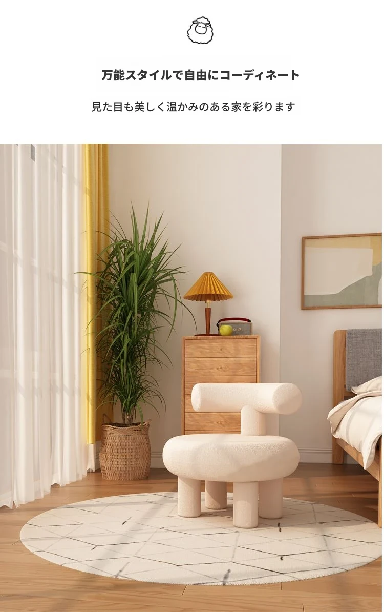 一人用シープフロックソファー - おしゃれで柔らかいクリーム色、子供部屋やリビングにぴったりのリラックスチェア!快適な座り心地で、くつろぎのひとときをお楽しみください。