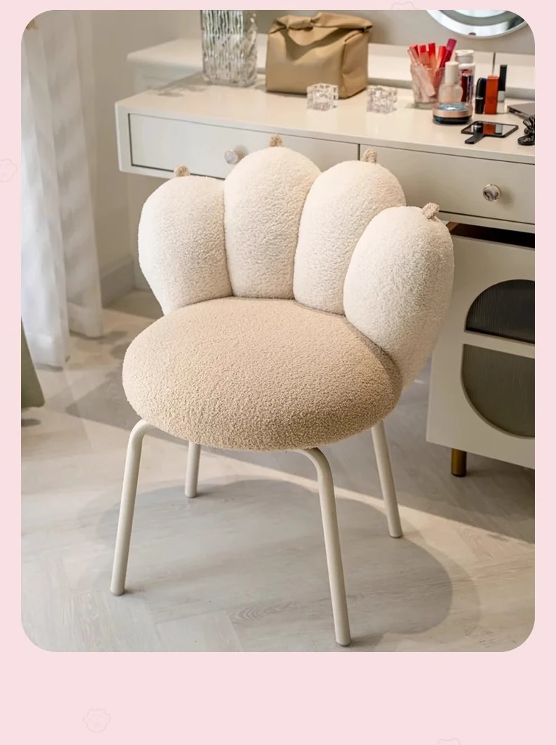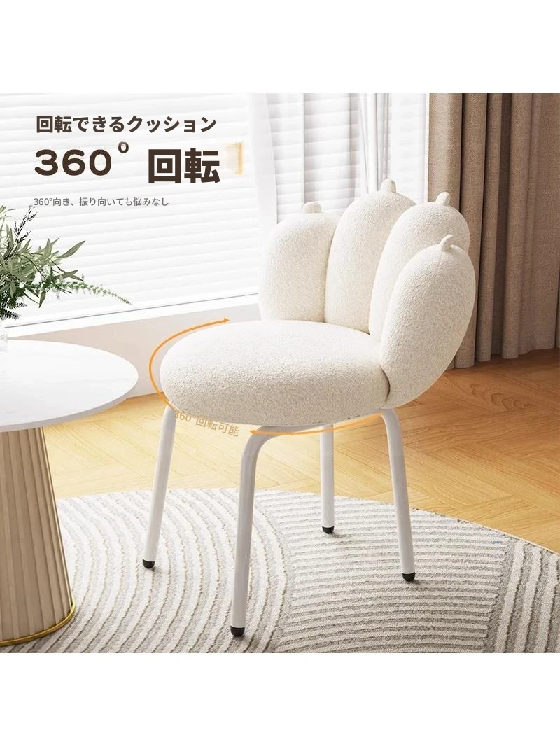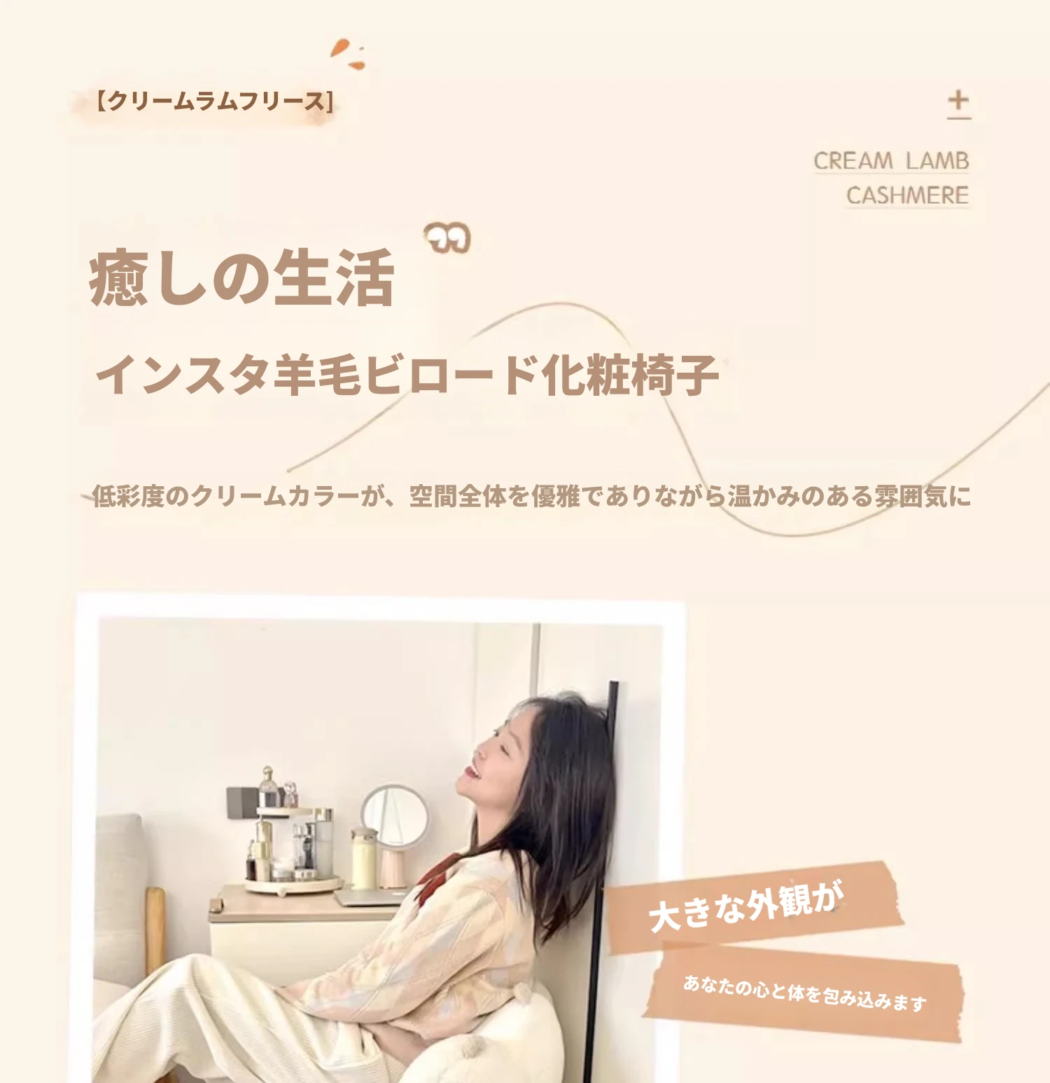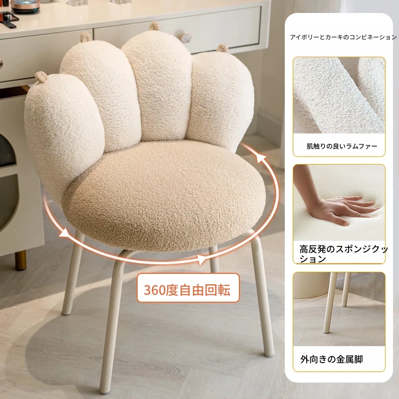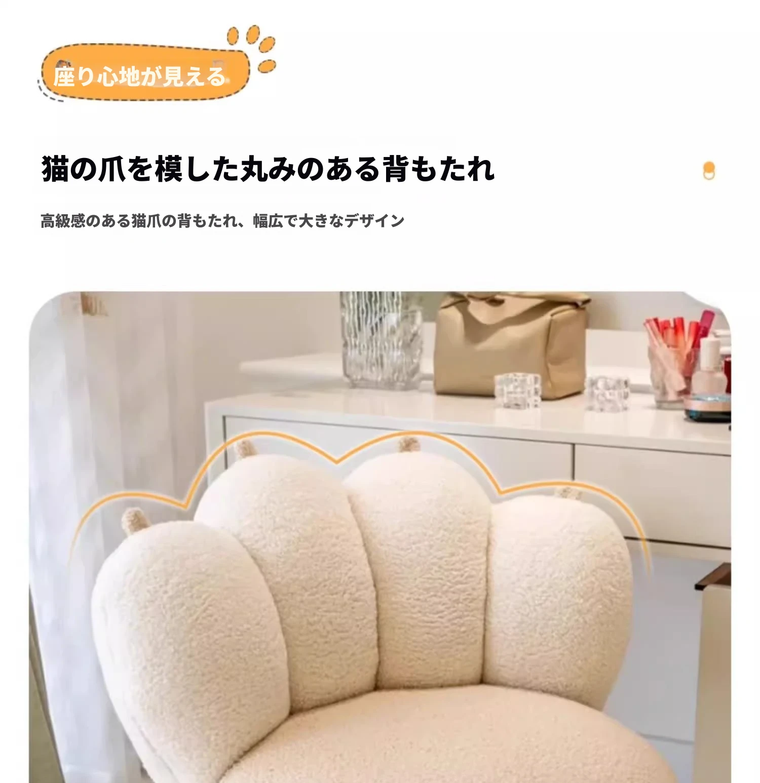 クリーム風メイクアップスツール|女性のための高級感溢れるドレッサーチェア|背もたれ付きで快適|ネイルサロンや自宅で大活躍|人気のキャットクローズデザイン!