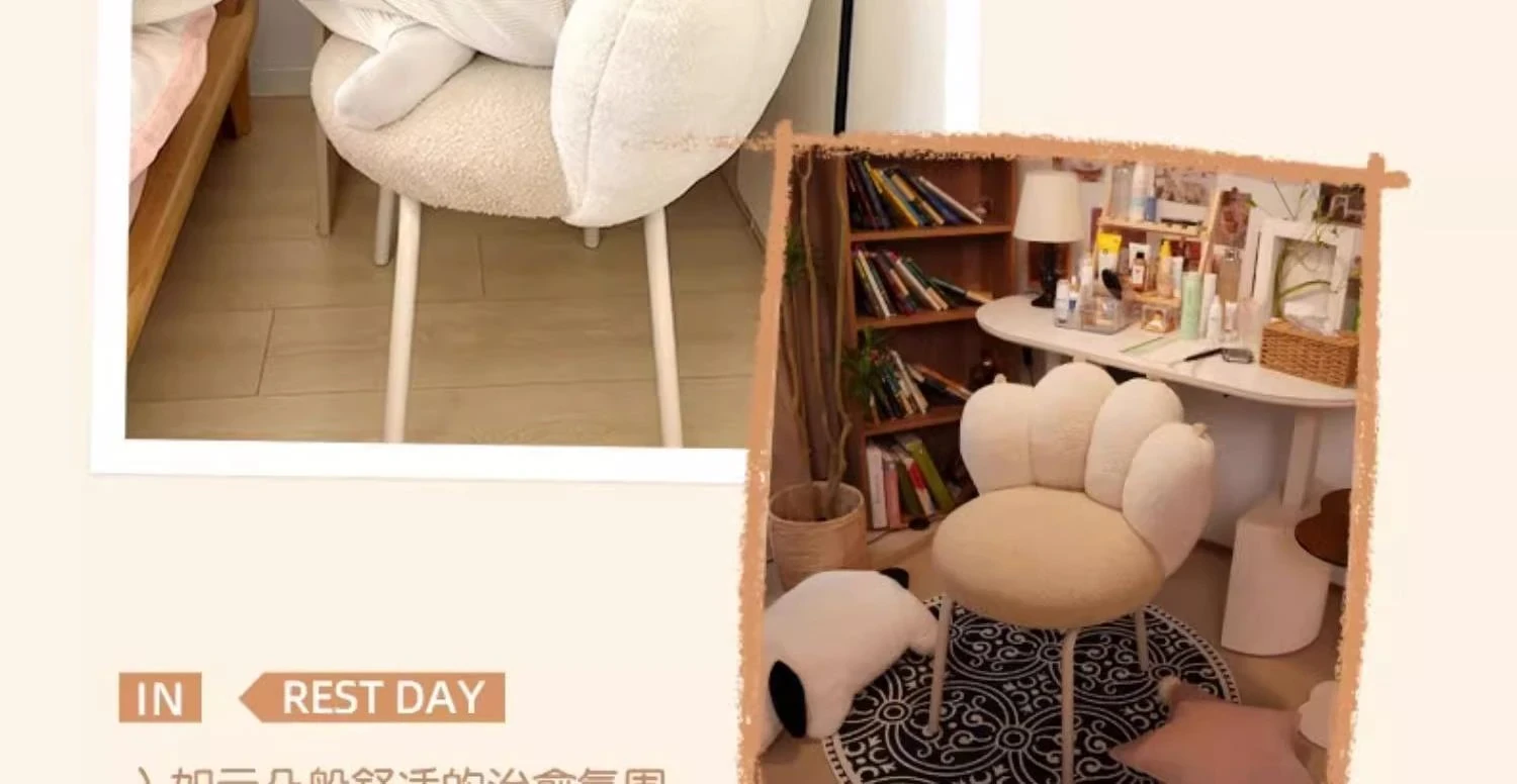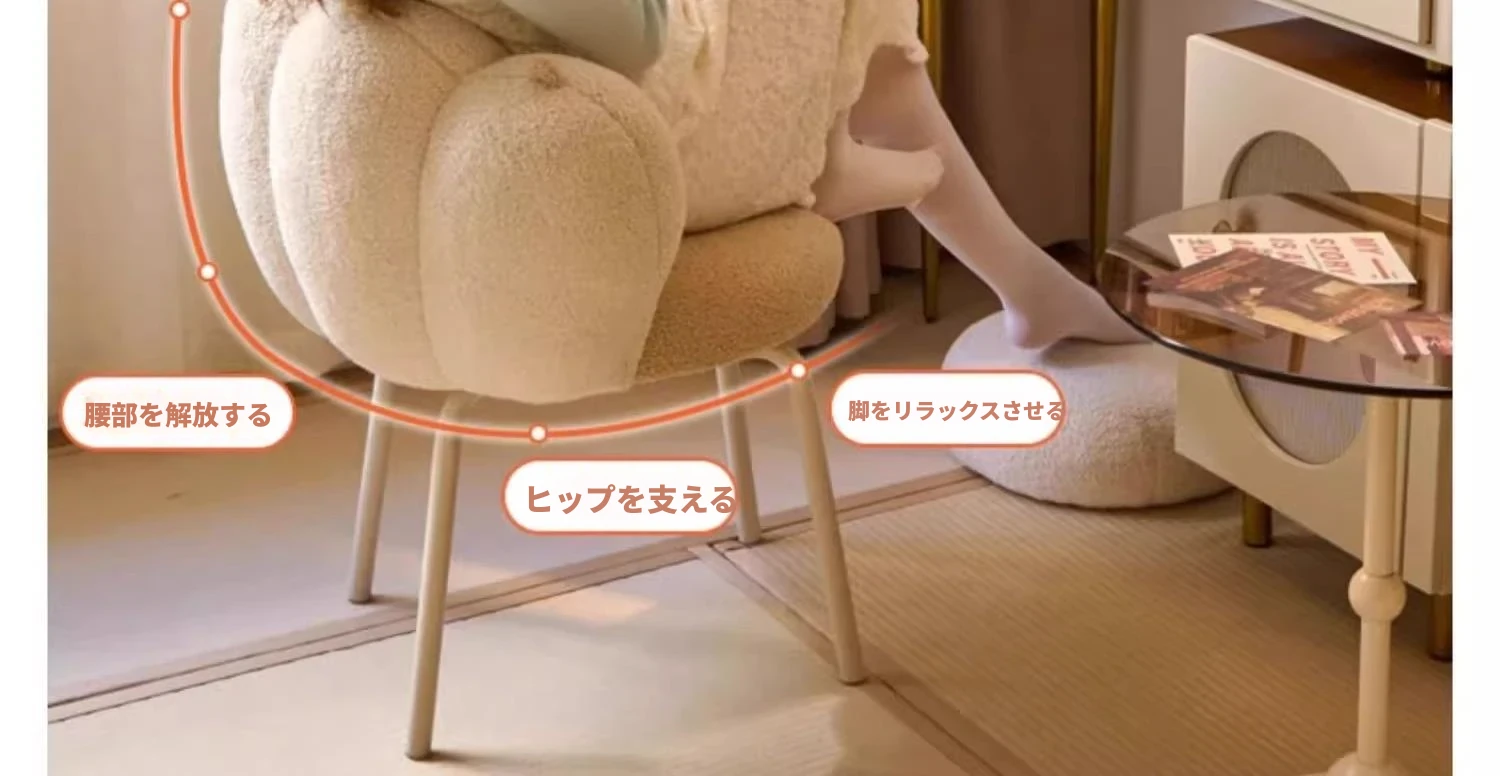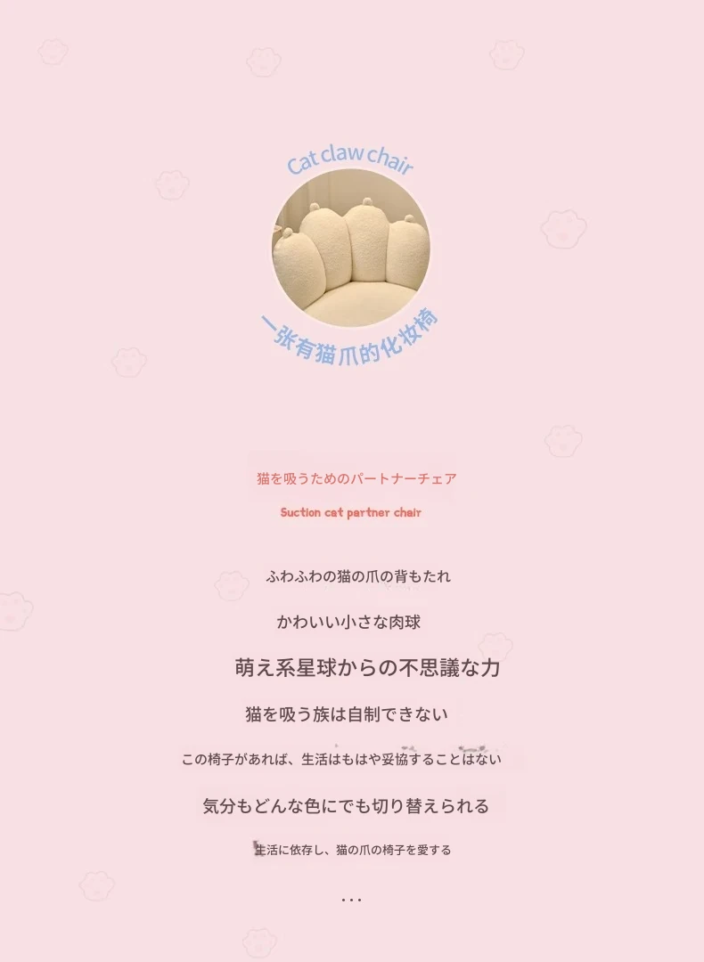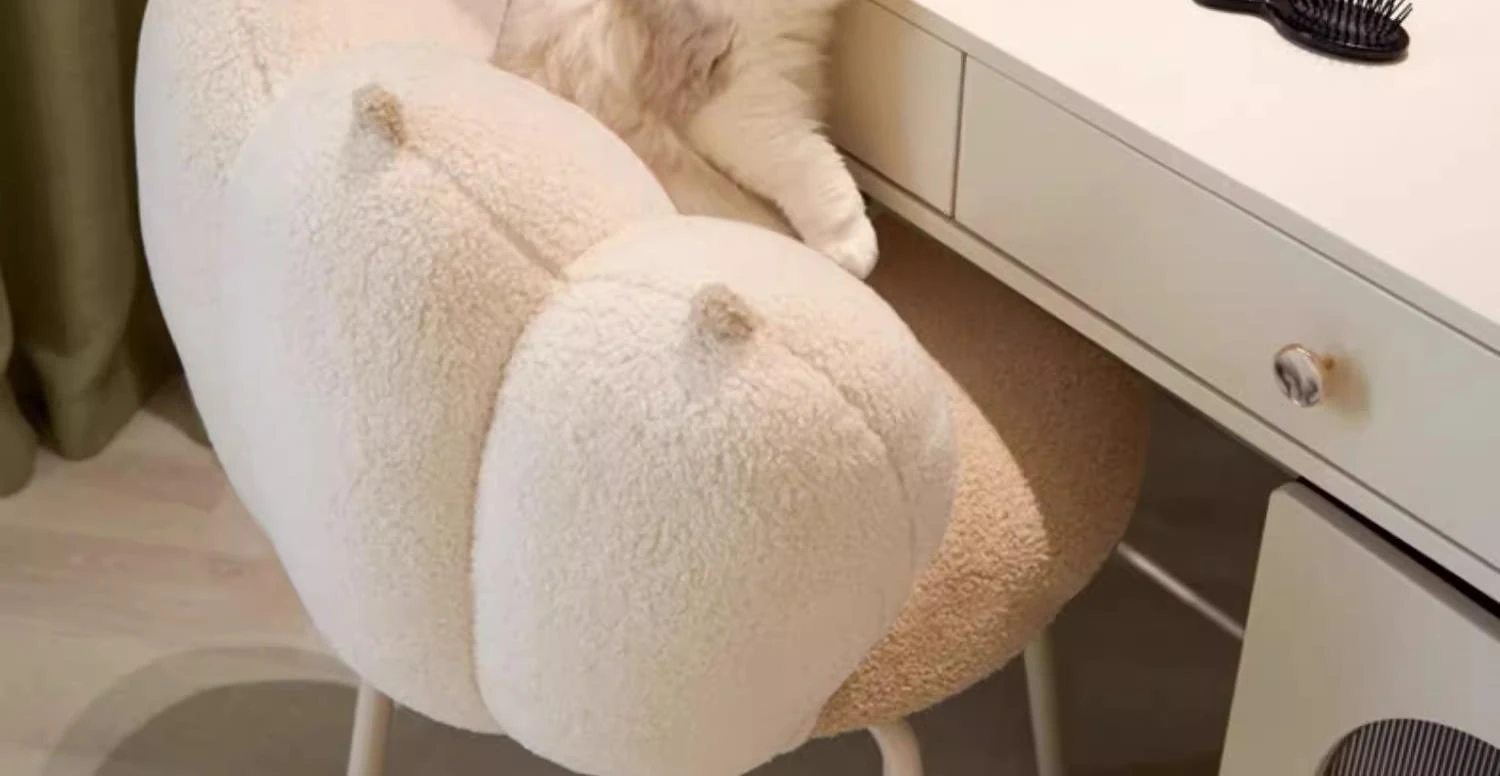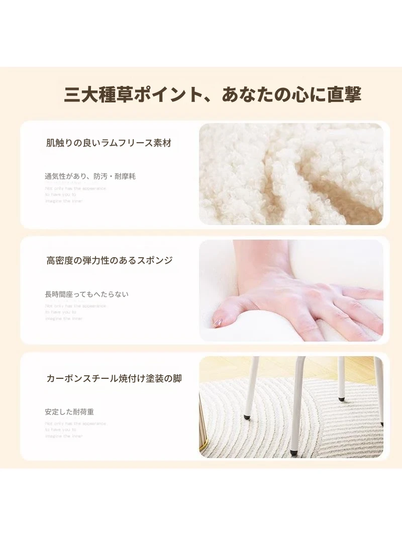 クリーム風メイクアップスツール|女性のための高級感溢れるドレッサーチェア|背もたれ付きで快適|ネイルサロンや自宅で大活躍|人気のキャットクローズデザイン!