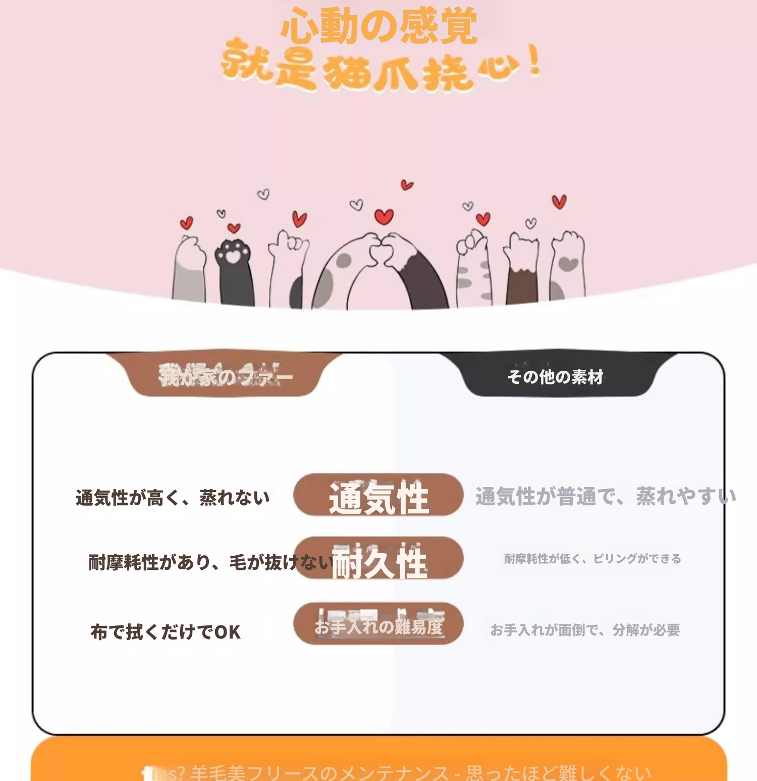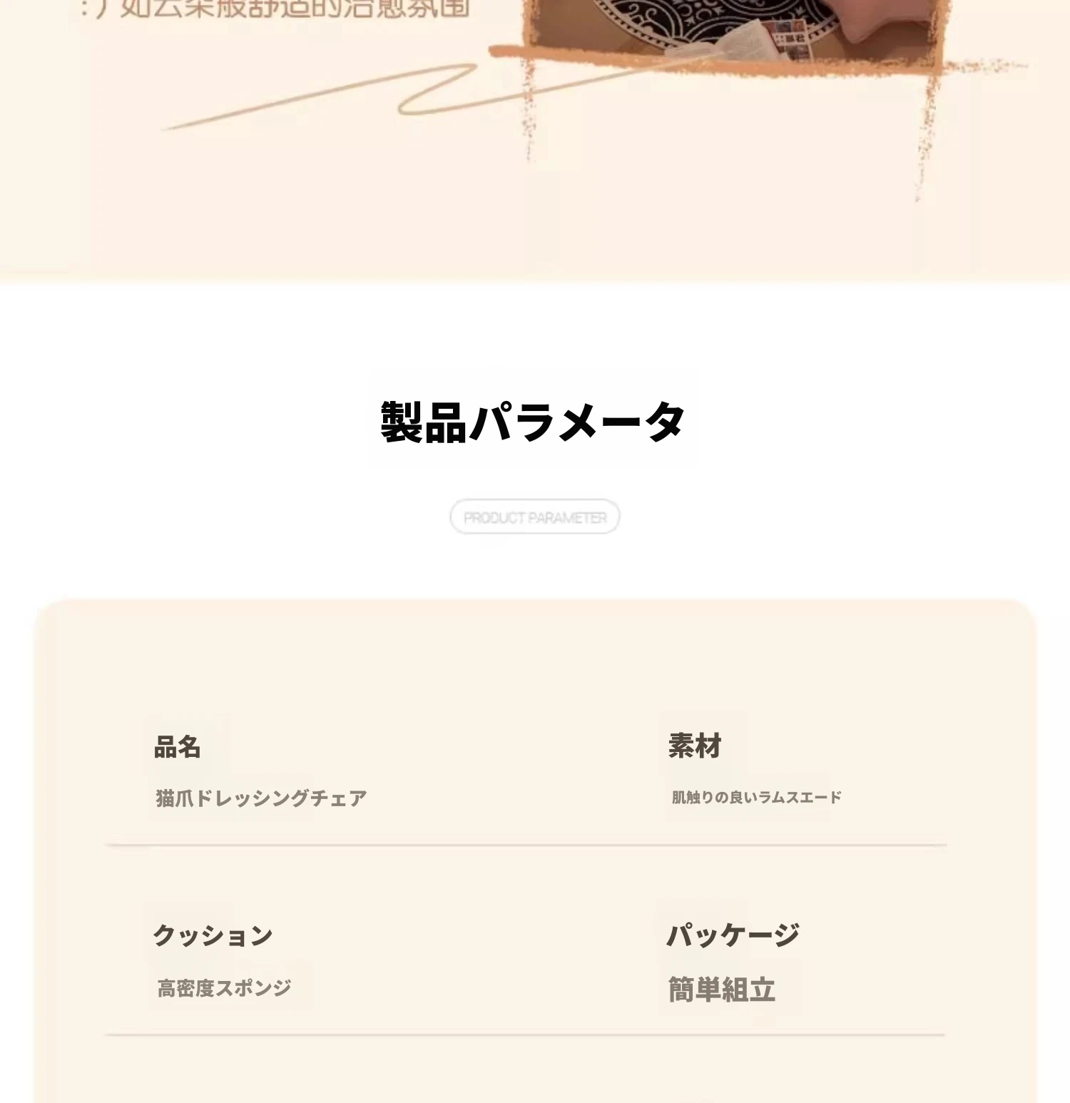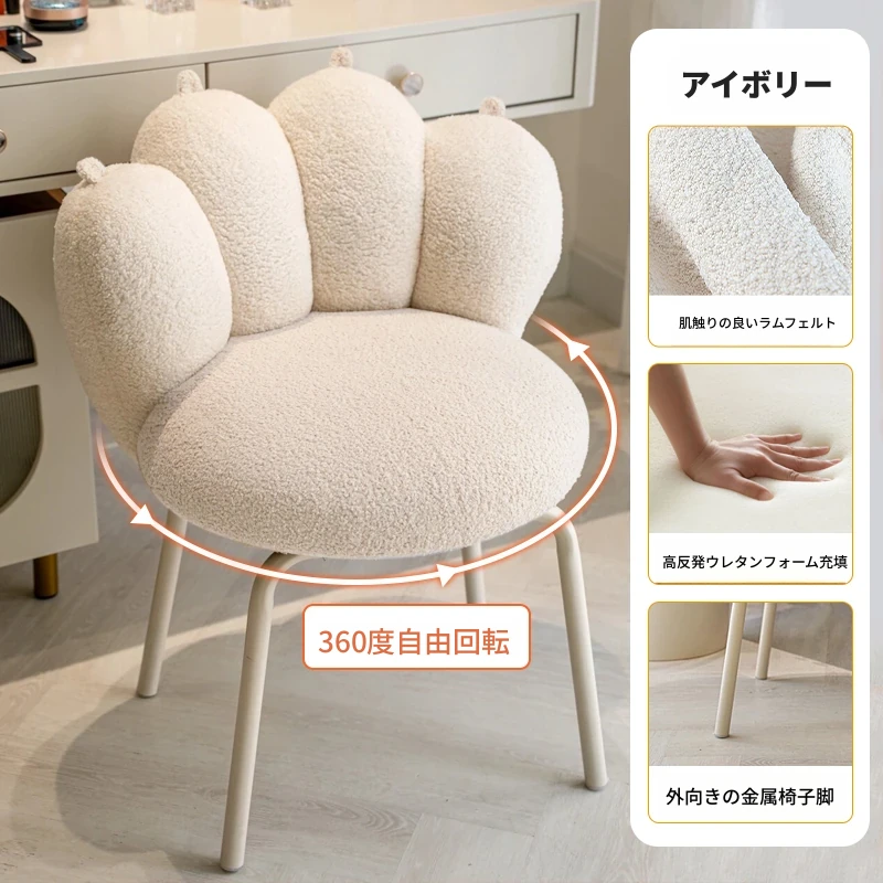【快適なラムファー+高反発スポンジ+個性的な猫の爪背もたれ】アイボリー-回転可能