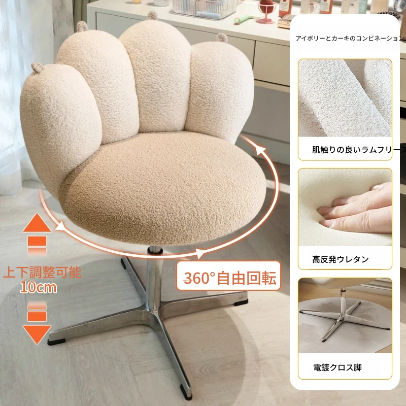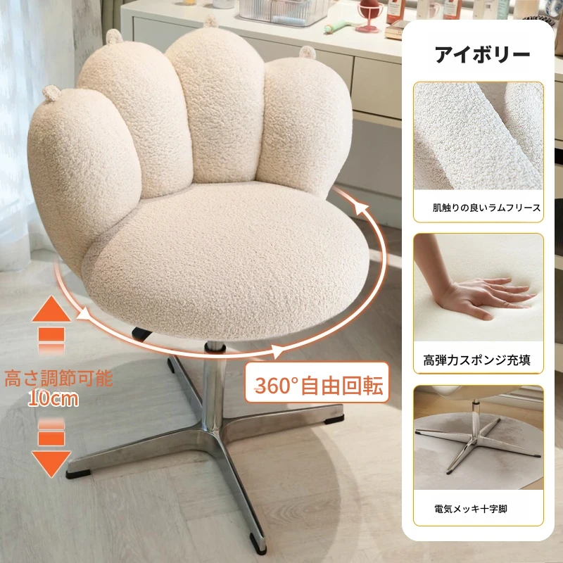 【快適なラムファー+高反発スポンジ+個性的な猫の爪背もたれ】アイボリー-昇降回転可能