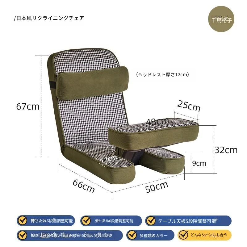 千鳥格子の多機能折りたたみ和風リクライニングチェア【保証3年】