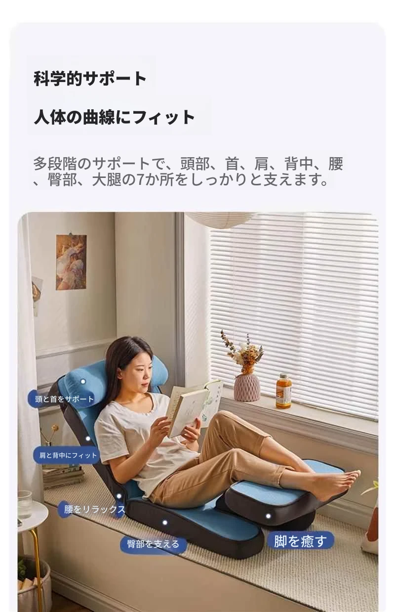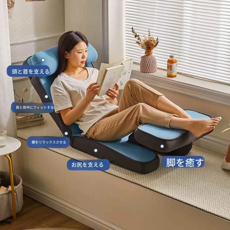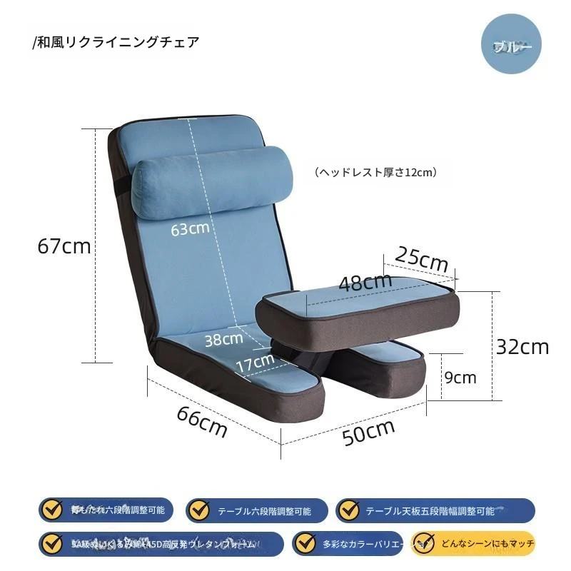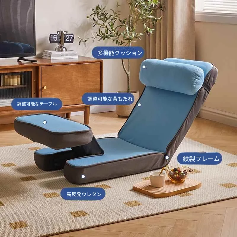 青の多機能折りたたみ和風リクライニングチェア【保証3年】