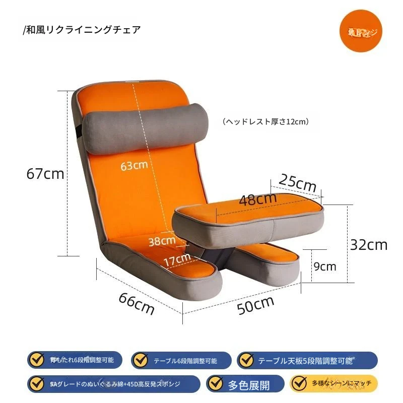 オレンジの多機能折りたたみ和風リクライニングチェア【保証3年】