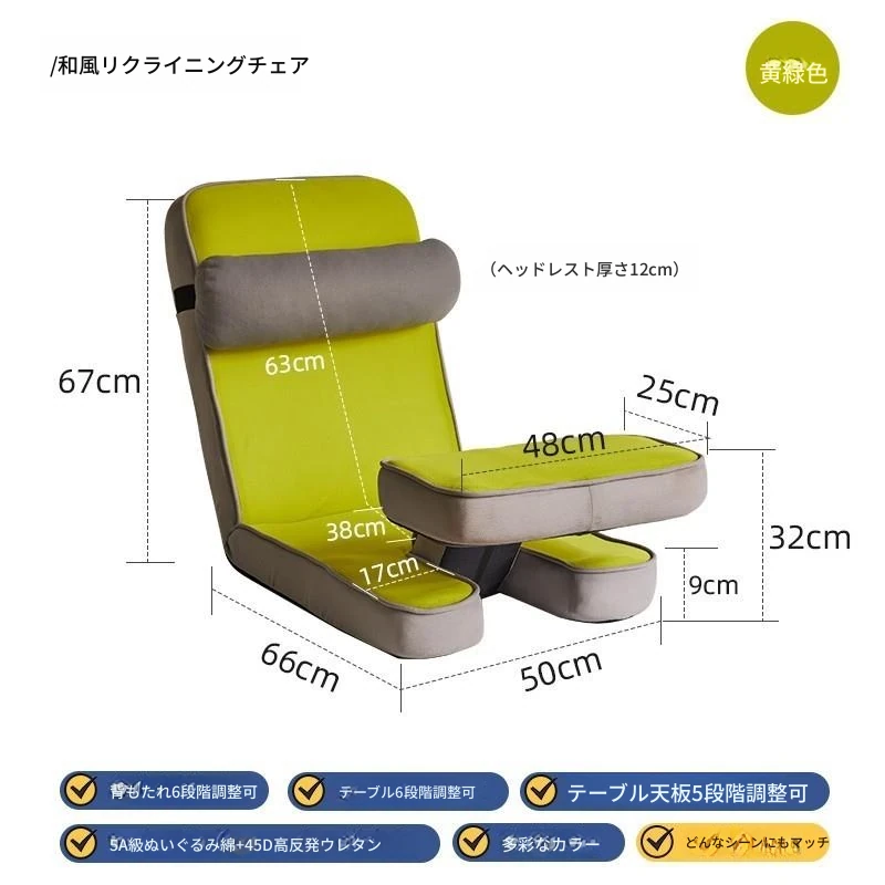 黄緑の多機能折りたたみ和風リクライニングチェア【保証3年】