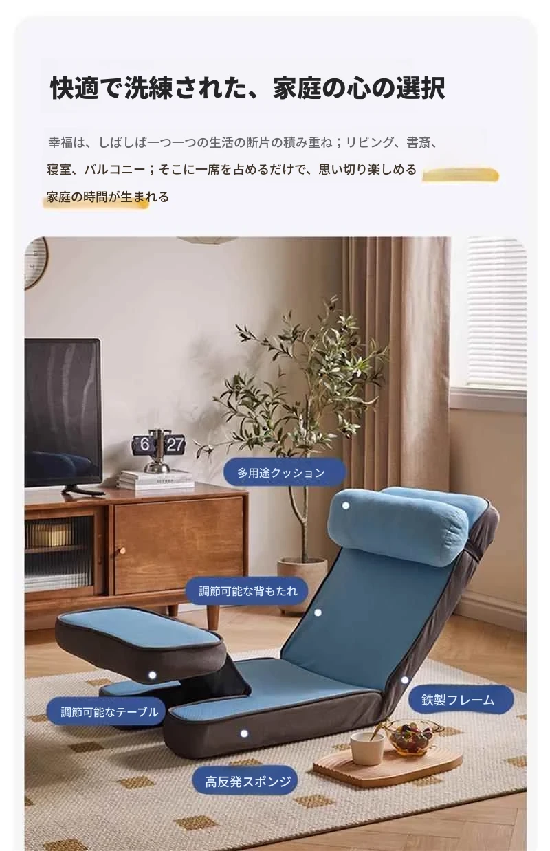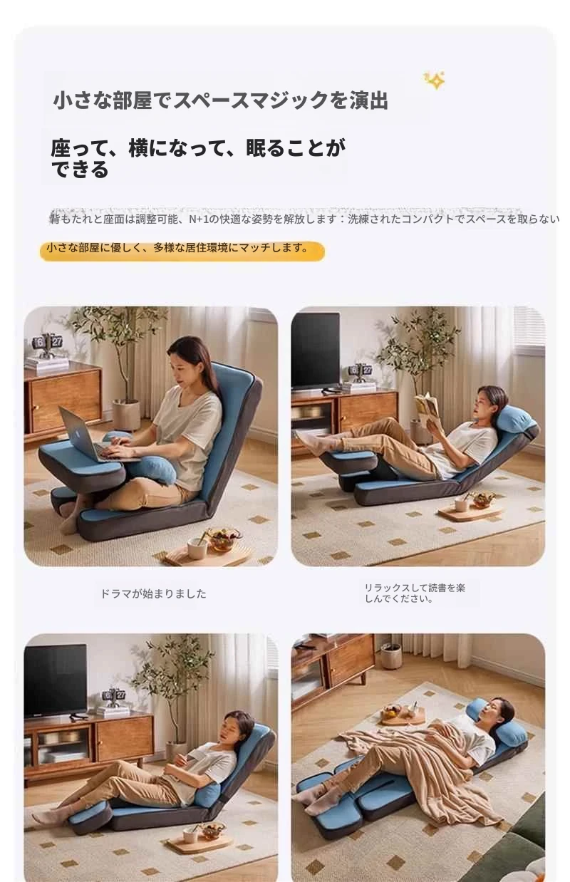 おしゃれで快適なラウンジソファ!タタミスタイルのリラックスチェア、寝室やバルコニー、寮に最適。折りたたみ式で可愛いデザイン、ひとり用のフロアチェアとしても大活躍!