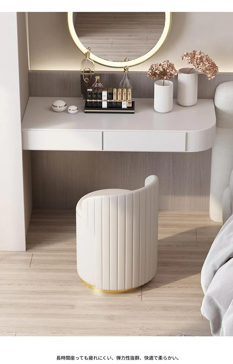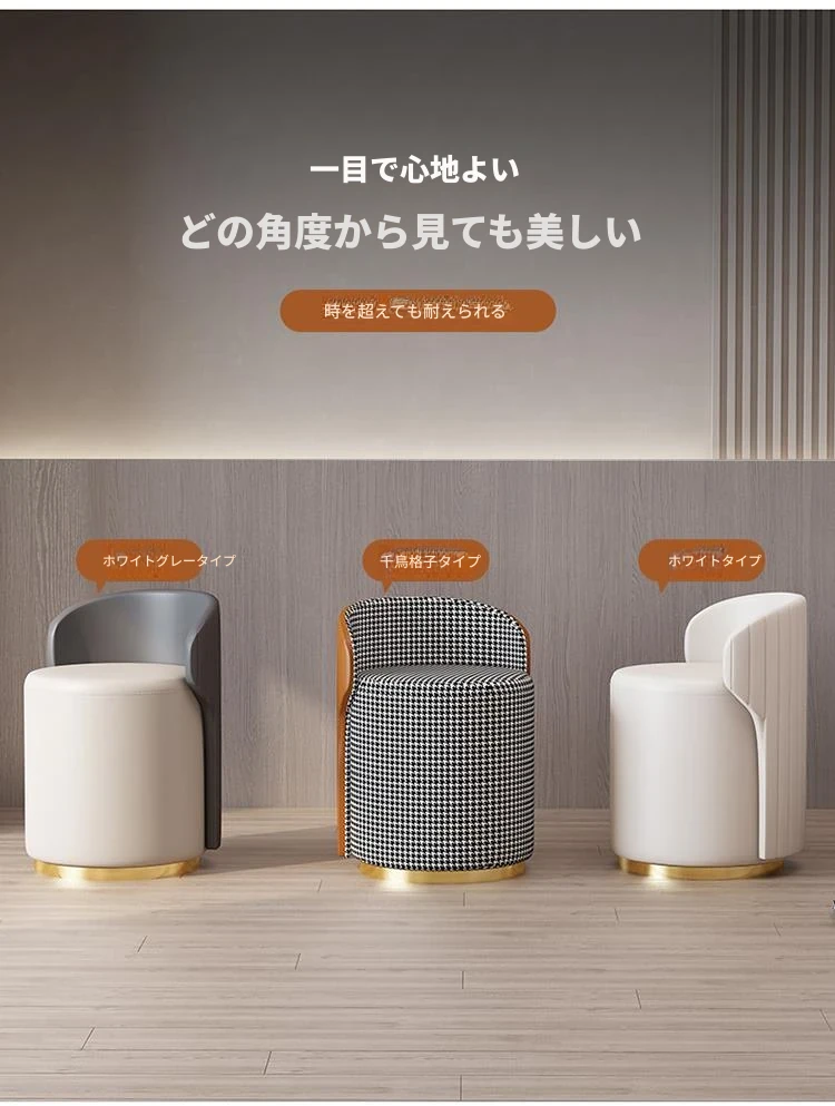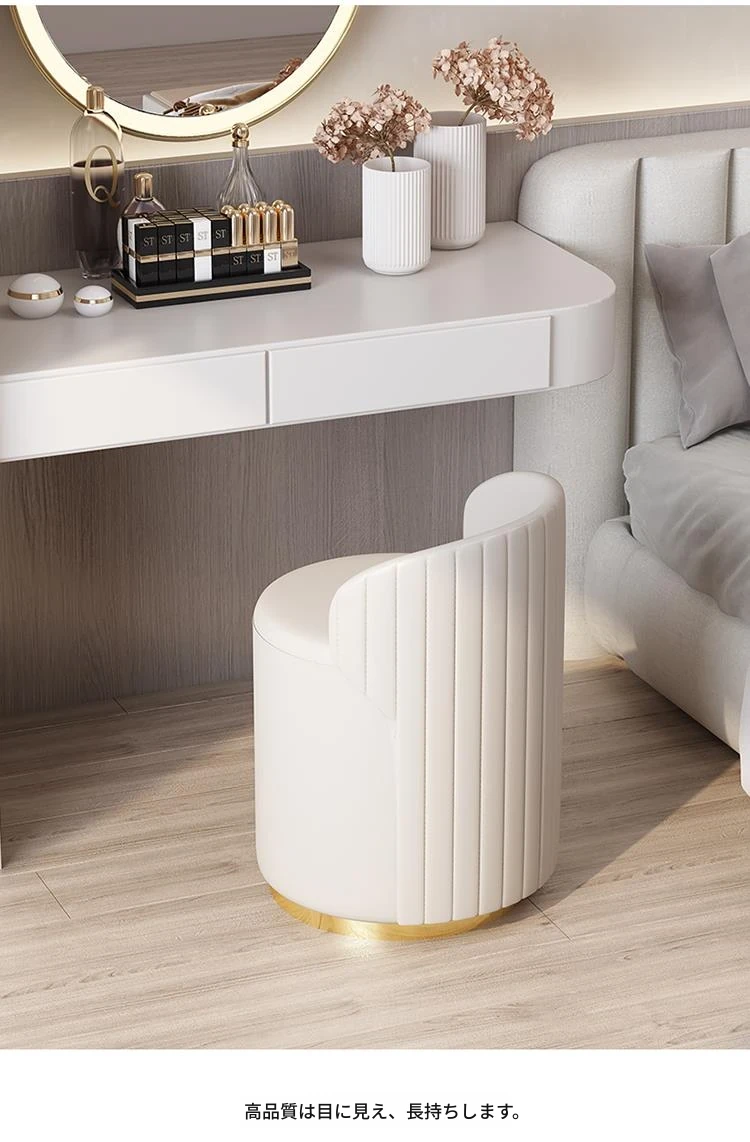 おしゃれな化粧台用チェア|背もたれ付きのネイル用スツール|インスタ映えするシンプルモダンなデザイン|軽やかで回転可能な化粧椅子|あなたの寝室にぴったりの贅沢感をプラス!