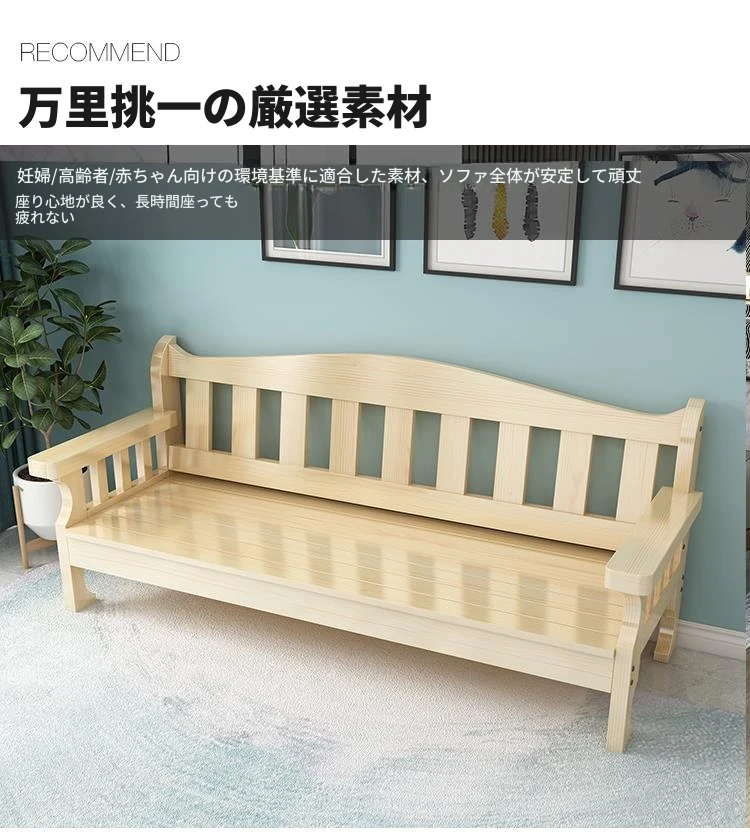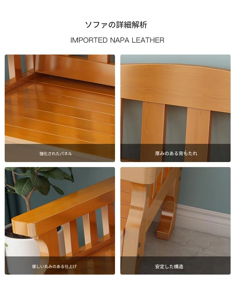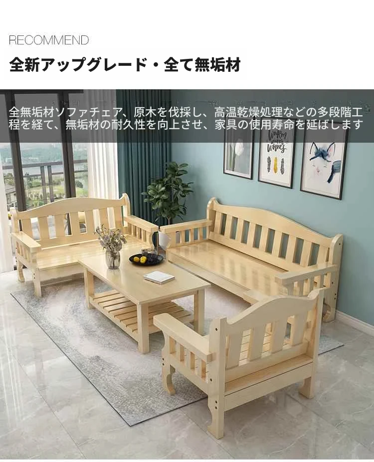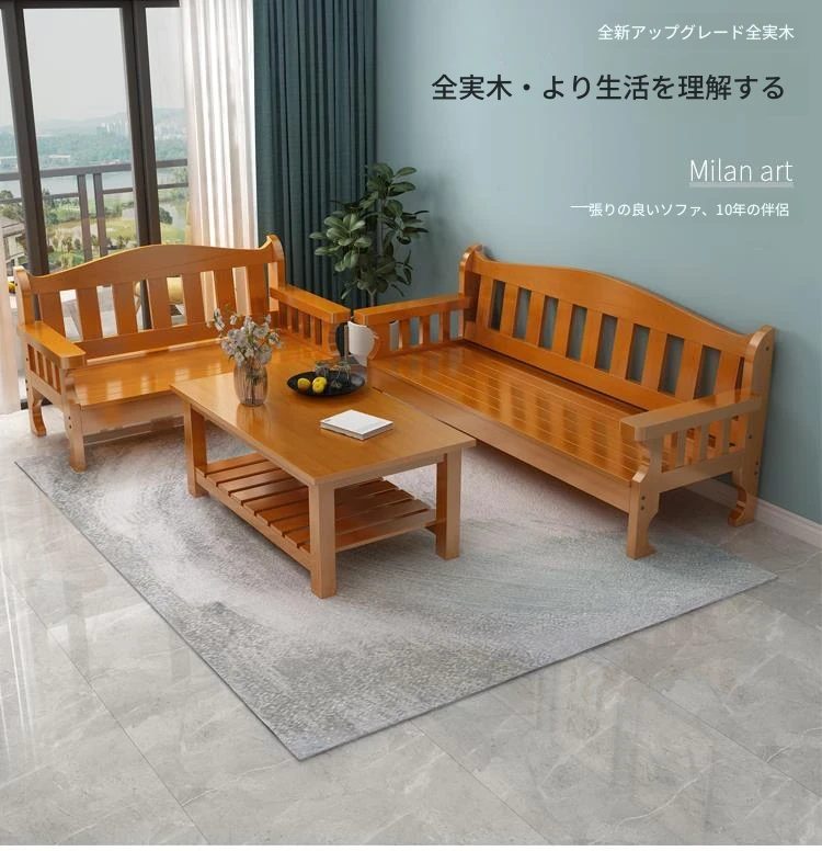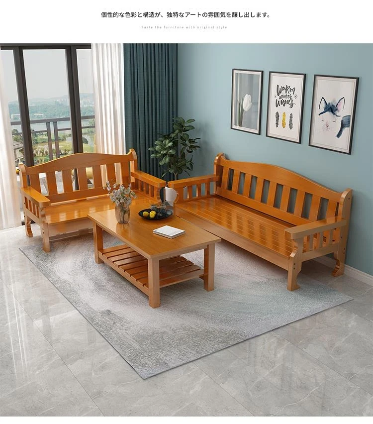 冬夏兼用の実木製ソファセット!小型住居にぴったりな高背もたれのデザイン。田舎風の温もりを感じる木製ソファとロングベンチで、快適なリビング空間を演出します。おしゃれで機能的な家具で、お部屋を素敵に彩りましょう!