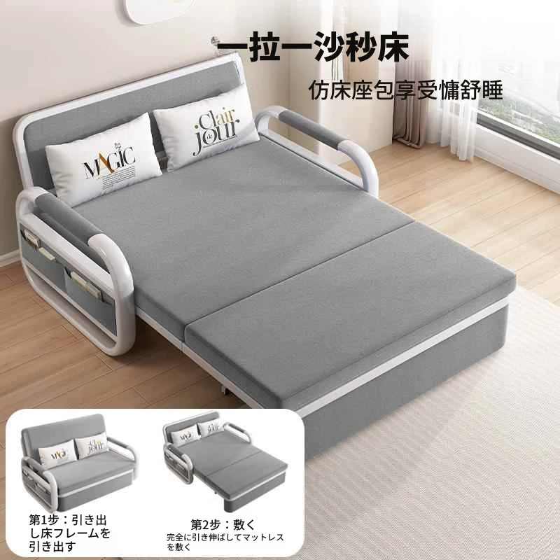 話題のソファベッド!2WAY多機能・折りたたみ式で省スペース、小型住宅にも最適。シングル&ダブル対応、収納機能付きでおしゃれなリビングを演出します!新発売!