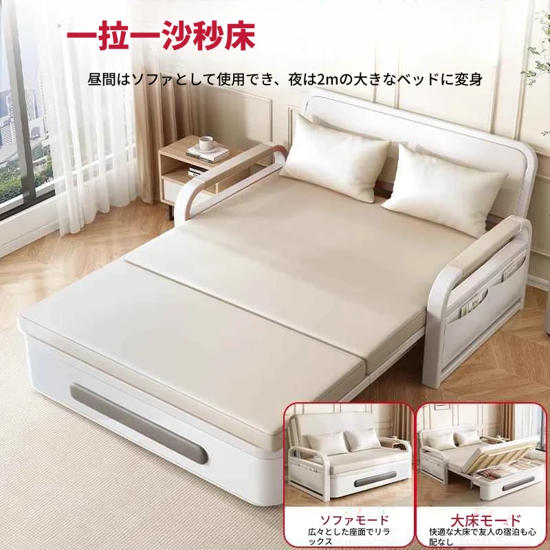 2024年新作!多機能アイアンソファベッド - リビングにぴったりな一人用折りたたみベッド!スタイリッシュなデザインで、座る、寝る、自由に変形可能。省スペースで便利な引き出し機能付き!