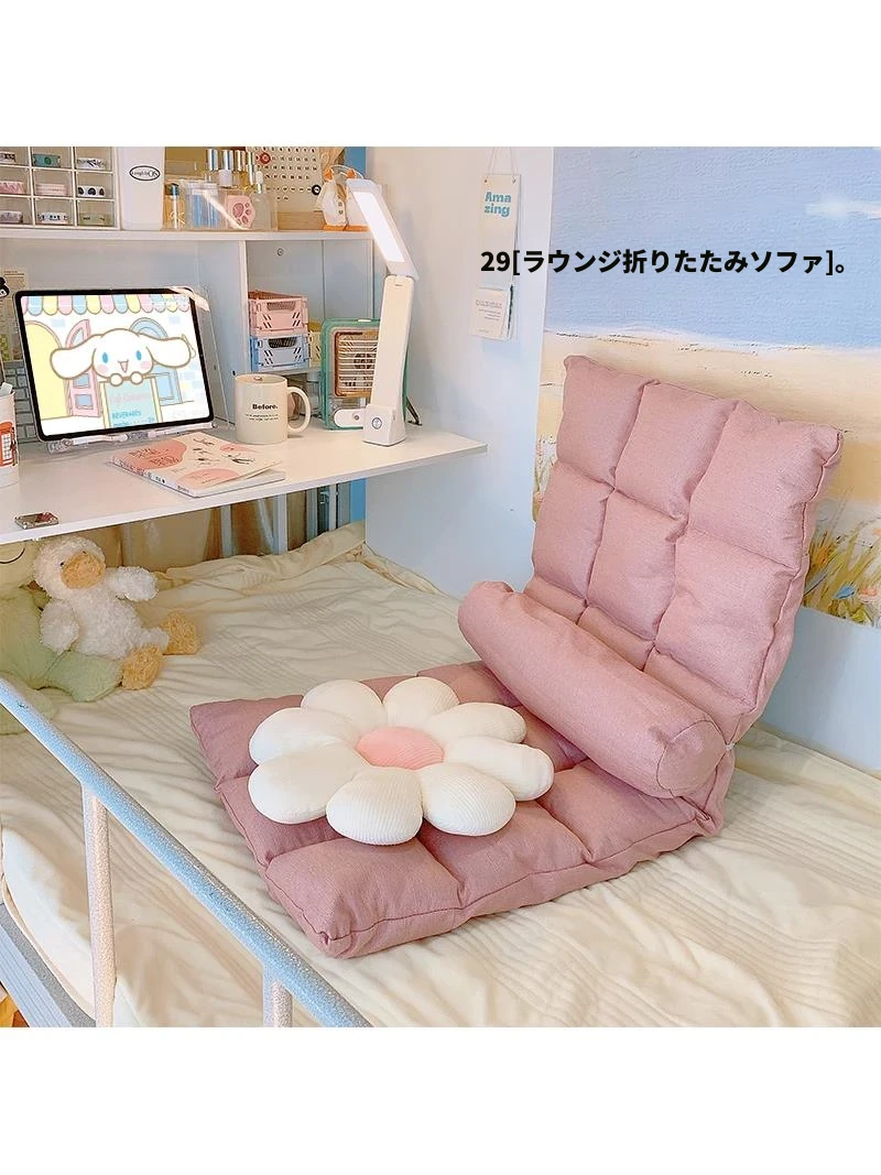 リラックスできる一人用ソファベッド!背もたれ付きで、寝室や窓辺、畳の上でも使える折りたたみ式の小型リクライニングチェア。足がないから省スペースで、寮生活にもぴったり!快適なひとときをお楽しみください。