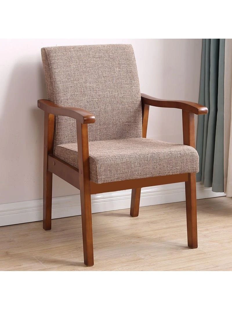 快適な座り心地!天然木製背もたれ付きアームチェア - コンピューターデスクや家庭用にぴったりの一人用ソファチェア。長時間の座り作業も楽々、リラックスして麻雀を楽しむのにも最適です!